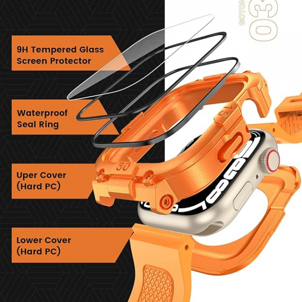 Apple Watch bandı 41 mm için yerleşik ön ekran koruyucu ve sağlam arka kapaklı çift katmanlı tasarıma sahiptir.