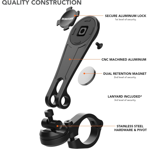 Patentli çift tutma kilitleme sistemi ve güçlü entegre mıknatıs güvenli bir bağlantı sağlar ve uçak sınıfı alüminyum son derece dayanıklıdır ve güneş ışığında bozulmaz.