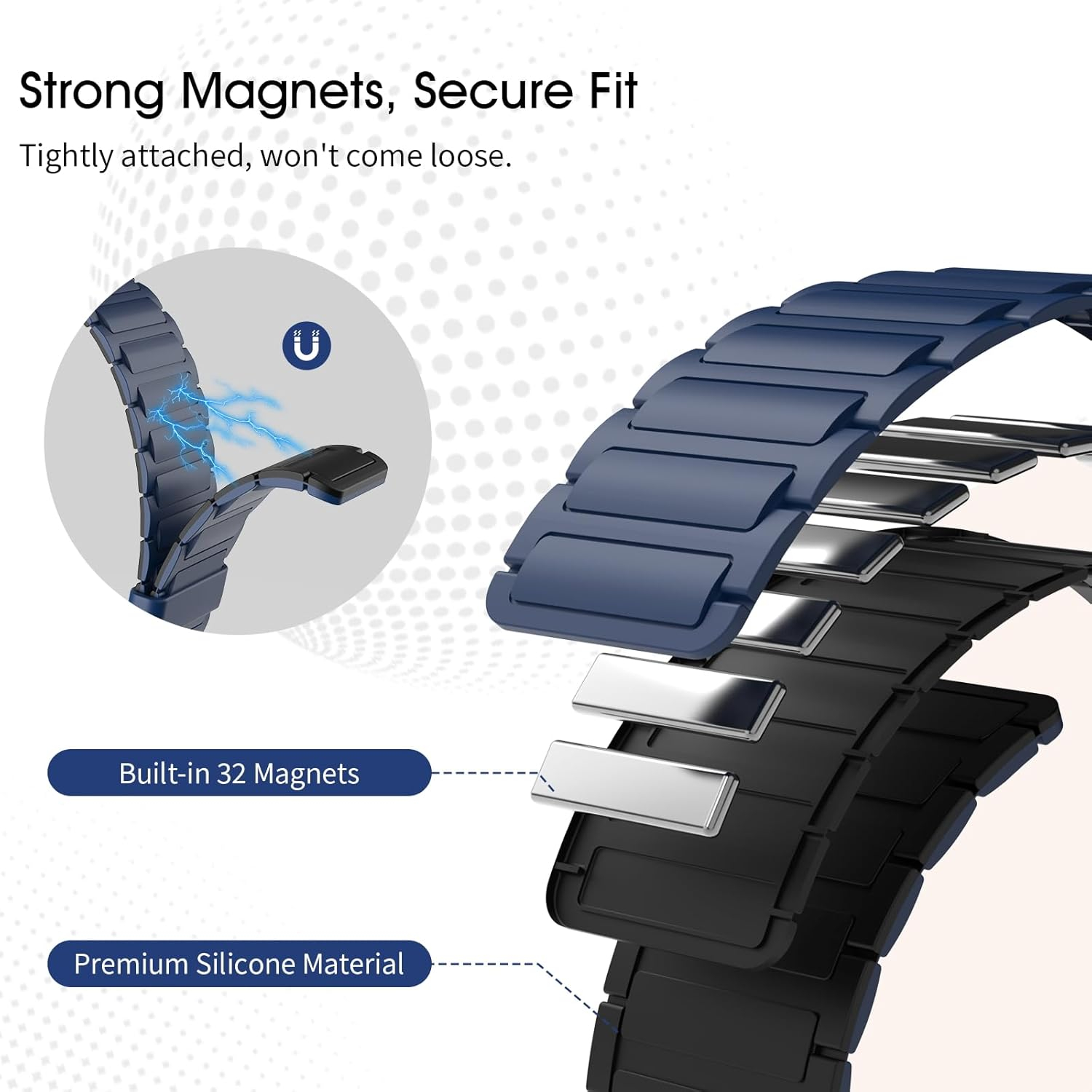 Silikon manyetik bağlantı saat kayışı Apple Watch ultra, ultra 2 49mm, Apple Watch Series 10 46mm, Series 9 8 7 45mm, Series 6 5 4 44mm, iWatch Series 3 2 1 42mm, iWatch Series SE2 SE 44mm ile uyumludur, Series 10 42mm ile uyumludur.