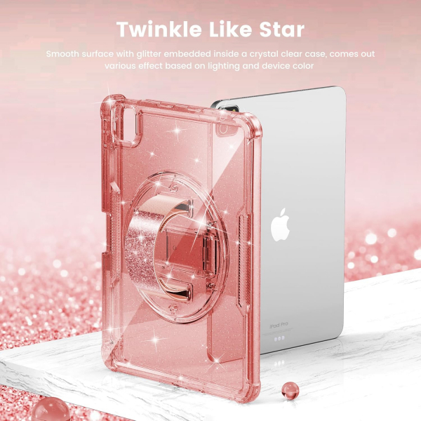 Bu iPad air 4./5. nesil kılıfın simli pürüzsüz ve şeffaf yüzeyi, özellikle moda kızları, kadınlar veya sevimli çocuklar için bireysellik duygusu verirken iPad'inizin güzelliğini vurgular.