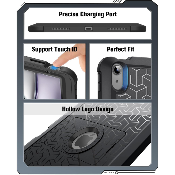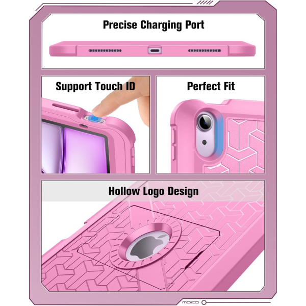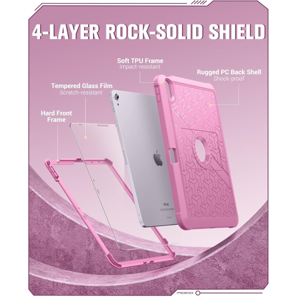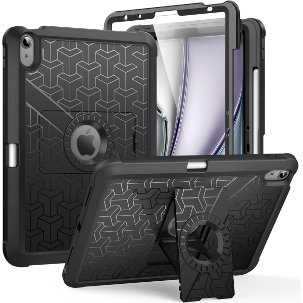 Darbe emici gelişmiş düşme koruyucusu sağlam bir 2 katmanlı koruyucu kapak, iPad Air 6th/5th/4th cihazınızın düşmelere, çarpmalara ve darbelere dayanmasını sağlar, zorlu koşullar, açık hava etkinlikleri, yoğun kullanım ve rastgele kazalar için üretilmiştir.