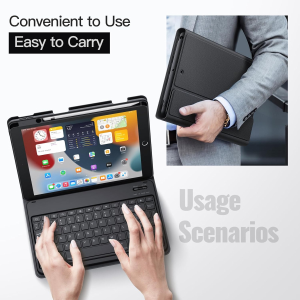 Kullanımı kolay tuşlara ve sabit Bluetooth bağlantısına sahip klavye, güçlü mıknatıslarla kapağa takılabilir ve iPad'inizi anında dizüstü bilgisayar moduna dönüştürerek çalışma, öğrenme veya oyun oynama verimliliğini artırır.
