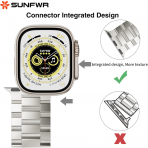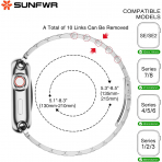 SUNFWR saat kayışları 5,3"-8,5" (135 mm-215 mm) bileklere uygundur ve Apple Watch 45 mm (Seri 7/8/9), 44 mm (Seri SE2/SE/6/5/4), 42 mm (Seri 3/2/1) ile uyumludur.