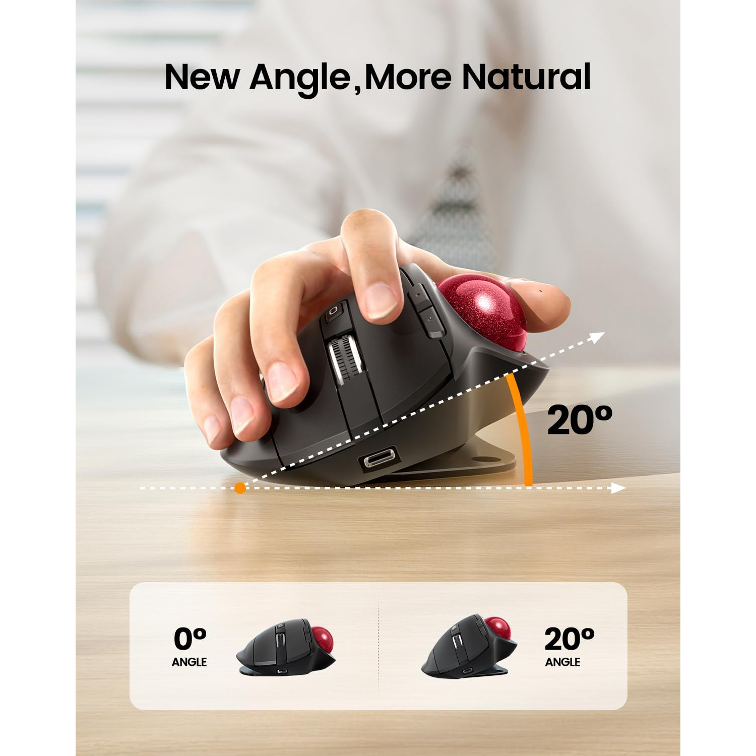 Benzersiz ayarlanabilir menteşe, ihtiyaçlarınıza göre trackball açısını 0 ila 20 derece arasında özelleştirmenize olanak tanır ve tüm gün konforu için daha doğal, rahat bir el pozisyonu sağlar.