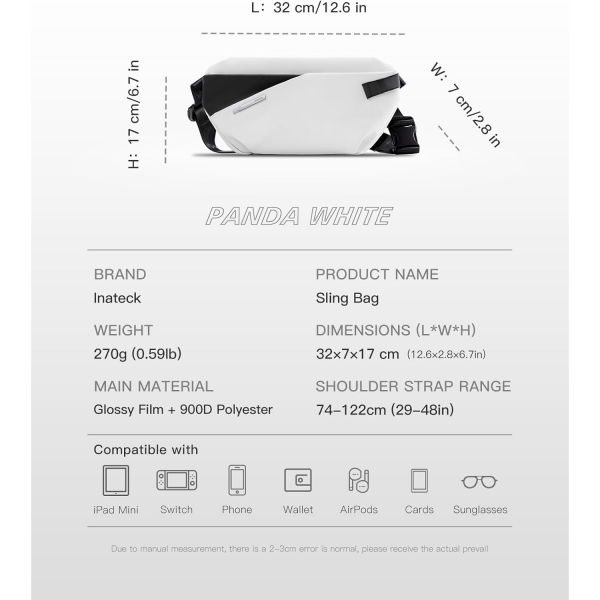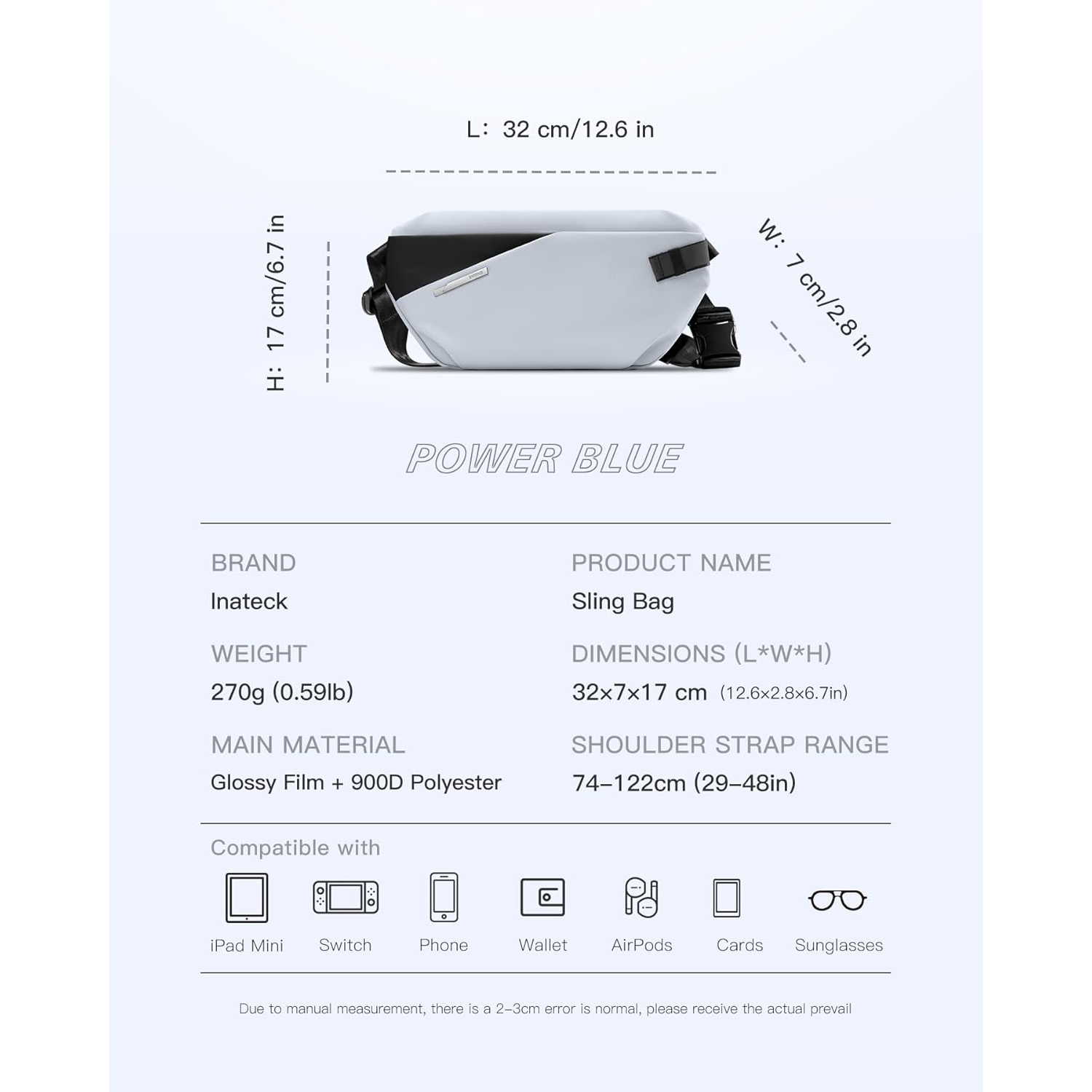 Erkekler ve kadınlar için Inateck askılı çanta 12,6 x 2,8 x 6,7 inç ölçülerindedir.