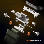 Apple watch ultra ile mükemmel şekilde eşleşen titanyum renkli, cesur bir döner metal konnektöre sahip olan apple watch ultra kayışı, bileğinize kusursuz bir şekilde uyum sağlayarak güvenli ve rahat bir uyum sağlar.