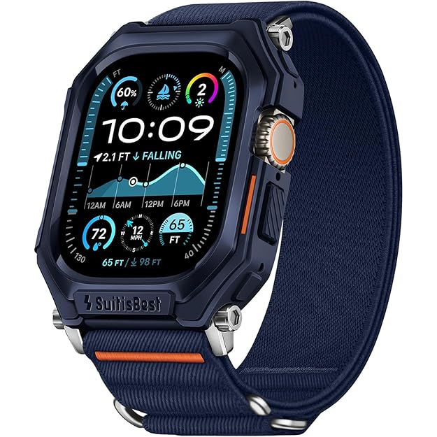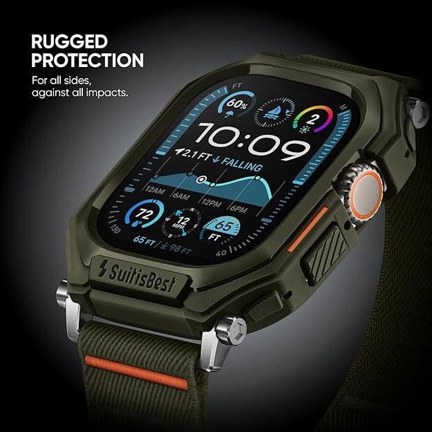 Suitisbest Apple Watch spor kayışı ve kılıfı, Apple Watch Ultra, Ultra 2, Series 9 8 7 6 5 4 for iWatch 49mm 45mm 44mm için tasarlanmıştır. Ayarlanabilir boyutu 6,5”-8,5” (165mm-215mm) bileğe uyar.