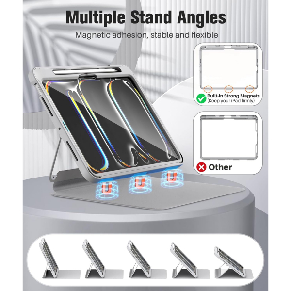 Dahili mıknatıslar size birden fazla sabit kullanım açısı sağlar, ellerinizi serbest bırakır, görüntüleme, video, yazma vb. için uygundur.