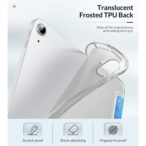 iPad 10'unuz için yumuşak TPU arka kabukla kaplı olan bu kılıf, parmak izlerine, darbelere, çizilmelere ve toza karşı tam gövde koruması sağlar.