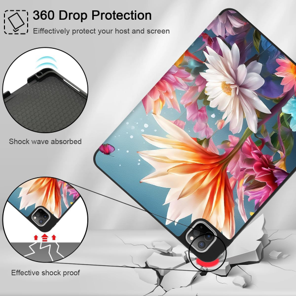 Premium PU dış yüzey ve yumuşak TPU arka kapaktan yapılmıştır, iPad'inizi darbelere, düşmelere ve darbelere karşı 360 derece tam olarak korur.