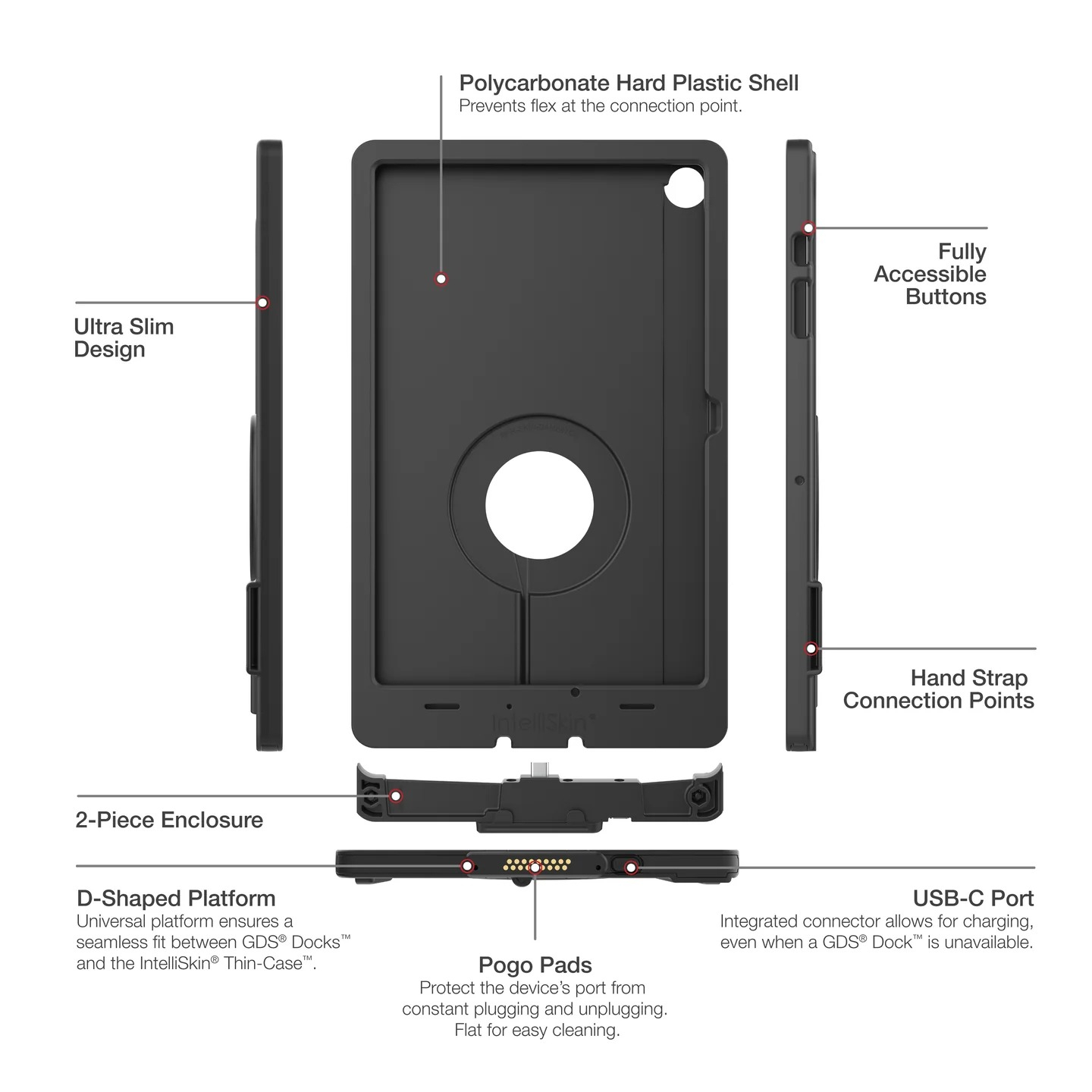 Sağlam polikarbonat kabuk, cihazınızı günlük aşınma ve yıpranmaya karşı korurken, komple muhafaza yetkisiz kullanıcıların tablete erişmesini zorlaştırır ve yoğun trafiğe sahip ortamlarda monte edilen tabletler için ek bir gönül rahatlığı sağlar.