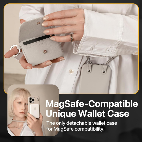 Cüzdan, kartların ve nakit paranın (2 karta kadar) düzgün bir şekilde saklanmasını sağlarken, yine de kılıftan ayrılabilir ve MagSafe uyumluluğunun keyfini çıkarabilirsiniz.