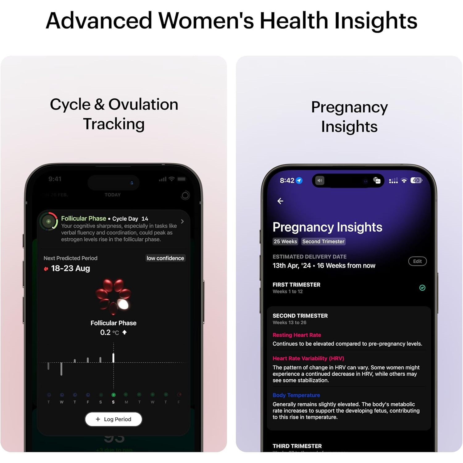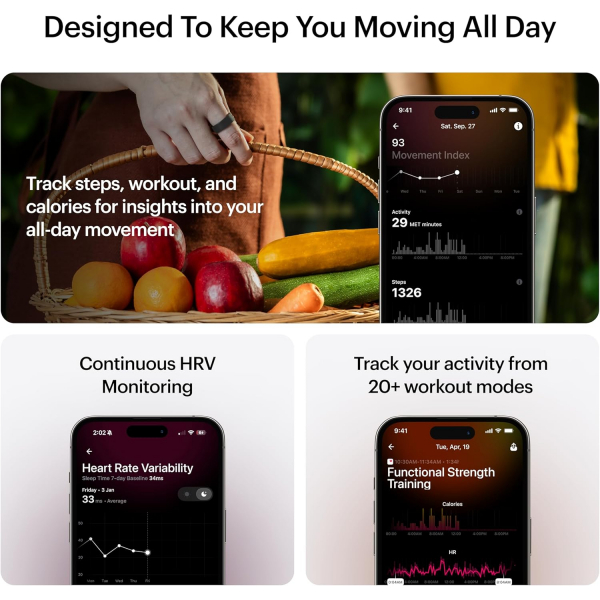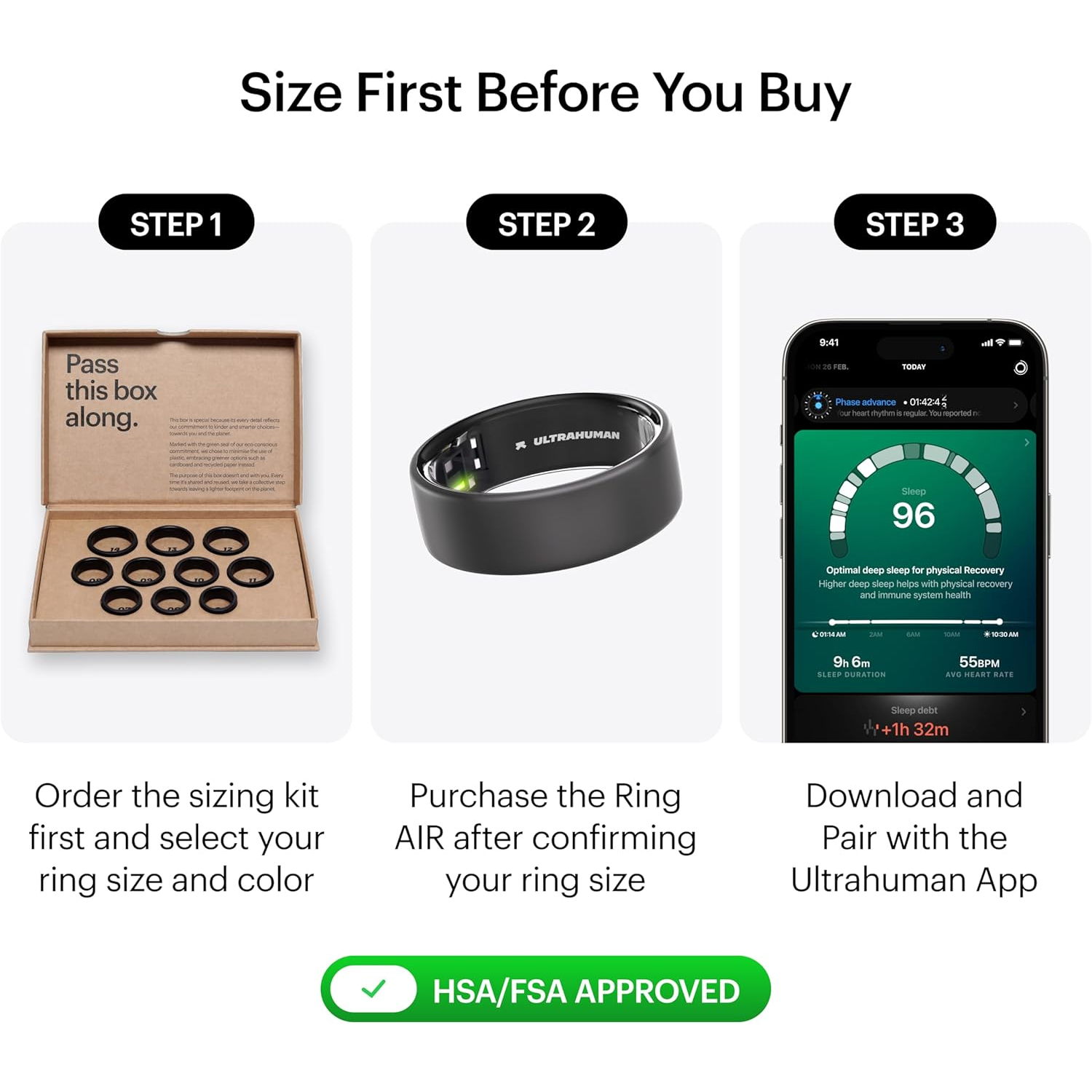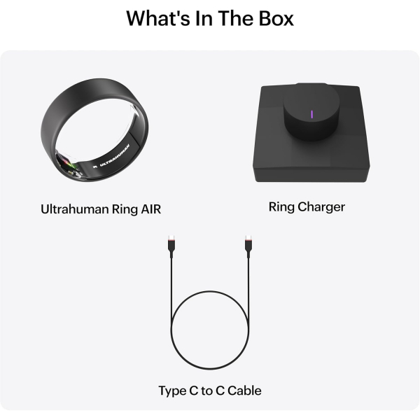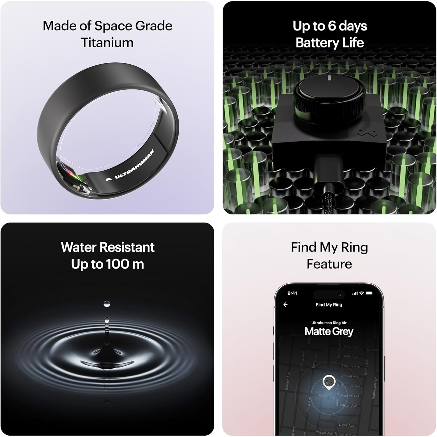 Pürüzsüz bir iç kabuğa sahip olan ve savaş uçağı sınıfı titanyumdan üretilen Ultrahuman Ring AIR, 6 günlük pil ömrüne, kablosuz şarja ve 100 metreye kadar suya dayanıklılığa sahiptir.