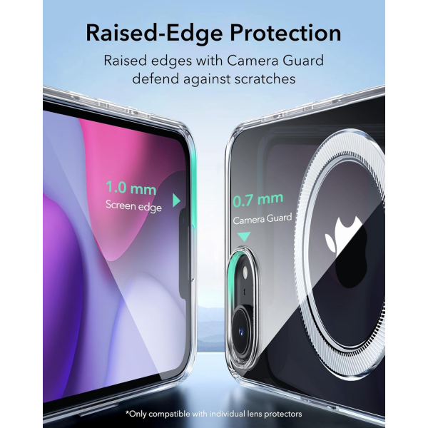 Darbe emici Air Guard köşeleri ve yükseltilmiş kenarlar (1,2 mm) ve Kamera Guard (0,7 mm) düşmelere, çarpmalara ve çizilmelere karşı koruma sağlar.