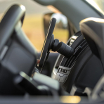 Quad Lock Vent araç tutucusu, havalandırma kanatlarını güvenli bir şekilde kavramak için uzatılabilir bir çelik kancaya sahiptir.