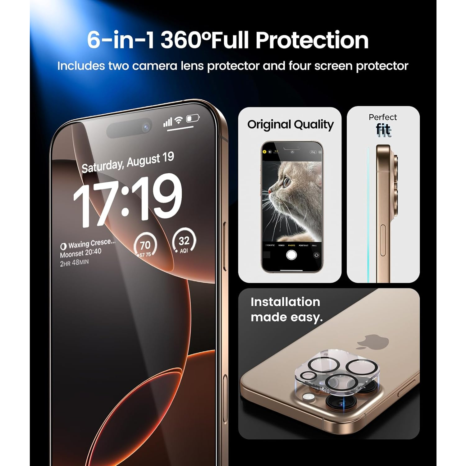 Ekran koruyucumuz, iPhone 16 Pro Max[6,9 inç] için özel olarak tasarlanmıştır ve boşluk bırakmadan tam koruma sağlayan mükemmel bir uyum için hassas kesiklere sahiptir.