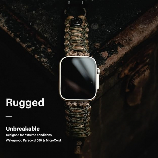 Birinci sınıf Paracord 550 ve MicroCord'dan üretilen KORDIZ Survivor Band, stok Apple Watch kayışının yerini almak üzere tasarlanmıştır.