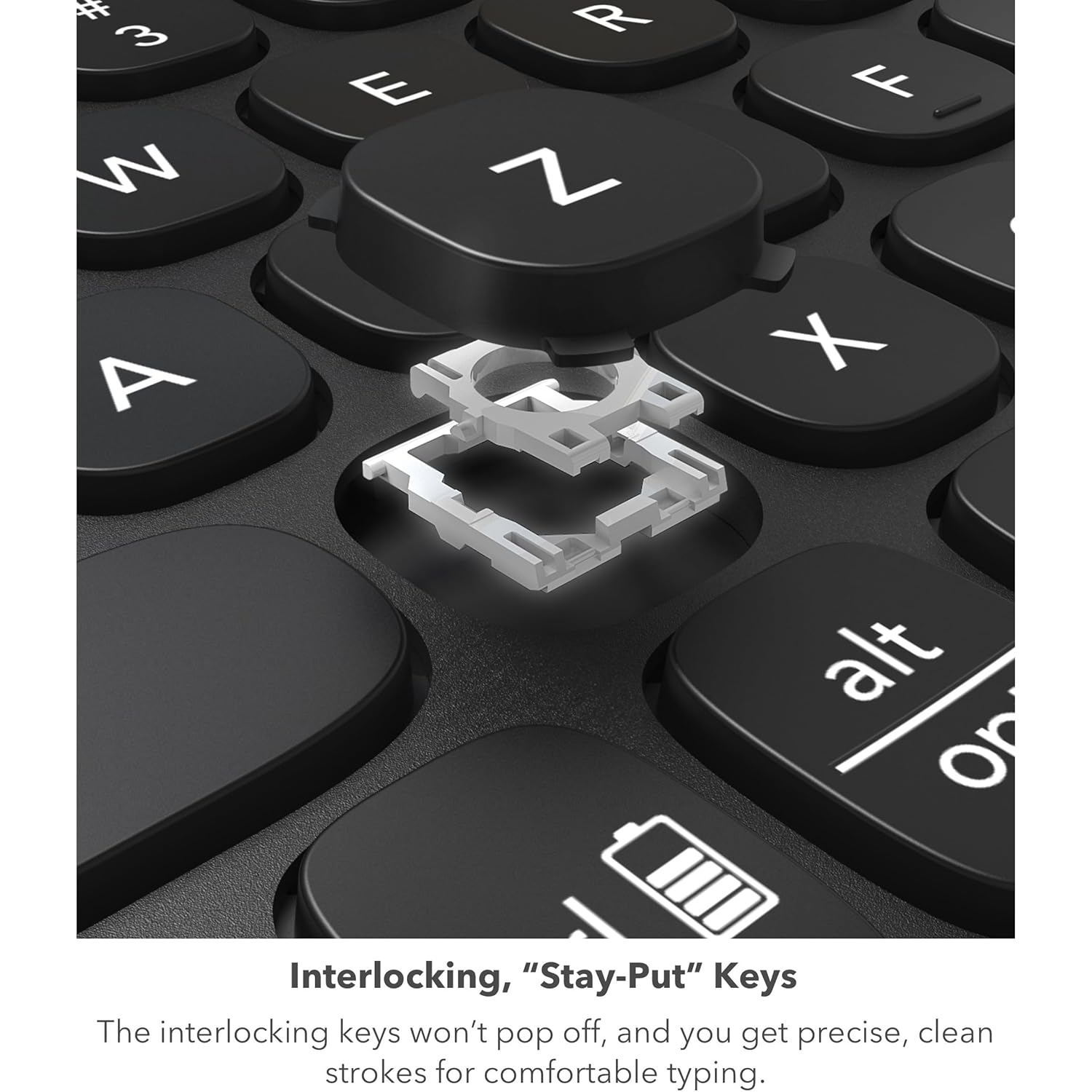 Yeni, ergonomik Pro anahtar kare tasarımı, hızlı, doğru dokunarak yazma için yumuşak, hassas tuş hareketi sunar.