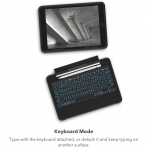Manyetik bir menteşeye sahip olan ZAGG Rugged Book, tabletinizi güvenli bir şekilde tutar ve maksimum üretkenlik için görüş açısını ayarlamanıza olanak tanır.
