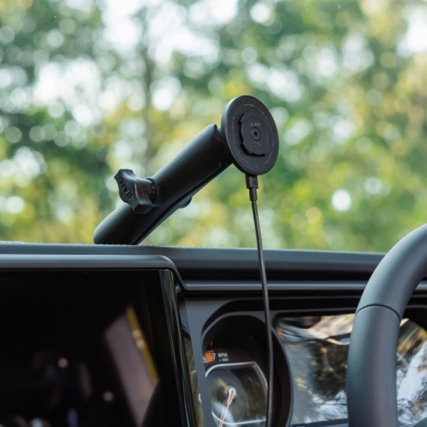 Bu kit, akıllı telefonunuzun herhangi bir yolculuk veya macera sırasında güvende, şarjlı ve erişilebilir kalmasını sağlamak için güvenli bir montaj çözümü, güvenilir kablosuz şarj ve dayanıklı bir MAG Kılıfı bir araya getiriyor.