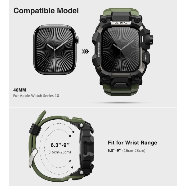 ULTIMAL Apple Watch 10 46mm Rugged Kayış ürünü Apple Watch 10 ile tam uyumludur.