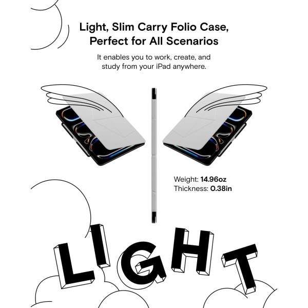 Bu tek parça iPad Pro/Air Kılıfı, katlanabilir tasarımı sayesinde taşıması zahmetsizken hızlı ancak sabit bir yükseltme sunar, tüm yaşam senaryoları için mükemmeldir.
