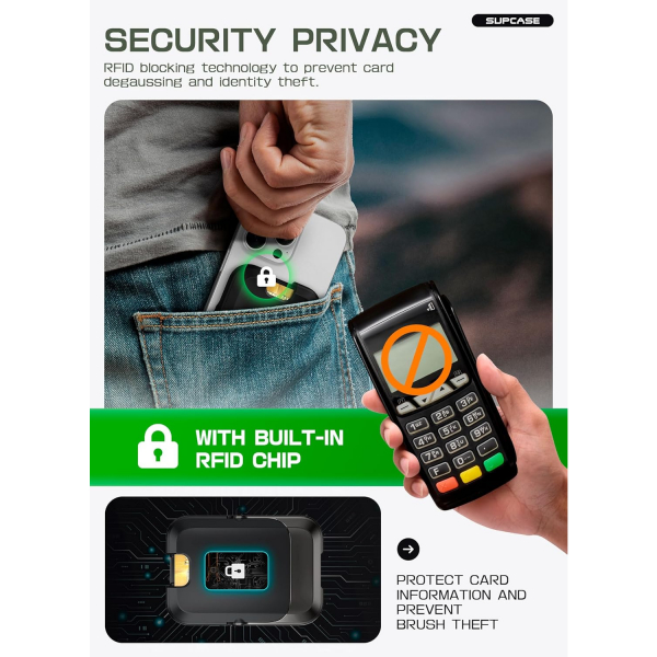 Kartın manyetik özelliğini kaybetmesini ve kimlik hırsızlığını önlemek için RFID engelleme teknolojisine sahip dahili 1 RFID Çipi, cüzdandaki tüm kartların bilgi güvenliğini koruyabilir.