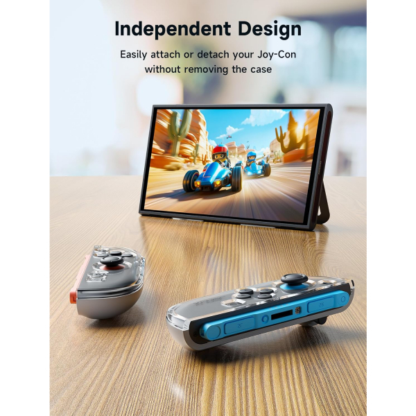 Sert PC ve esnek TPU kombinasyonu, kazara düşmelere, darbelere ve çizilmelere karşı çift koruma sunarak JoyCon kontrol cihazlarınızı her zaman güvende tutar.
