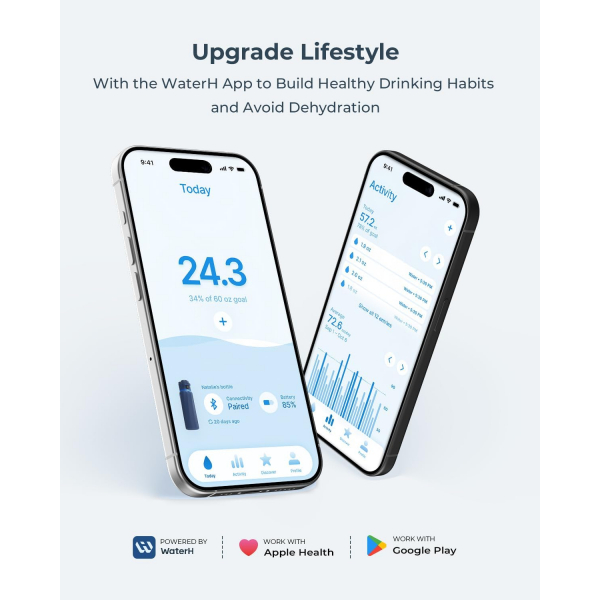 Kapaktaki ışık halkası, LED ekran ve telefonunuzdaki veya akıllı saatinizdeki bildirimler, su içmeyi unutmanın neden olduğu baş dönmesi, yüksek tansiyon ve yorgunluk gibi olumsuz dehidrasyon etkilerinden kaçınmanıza yardımcı olur.