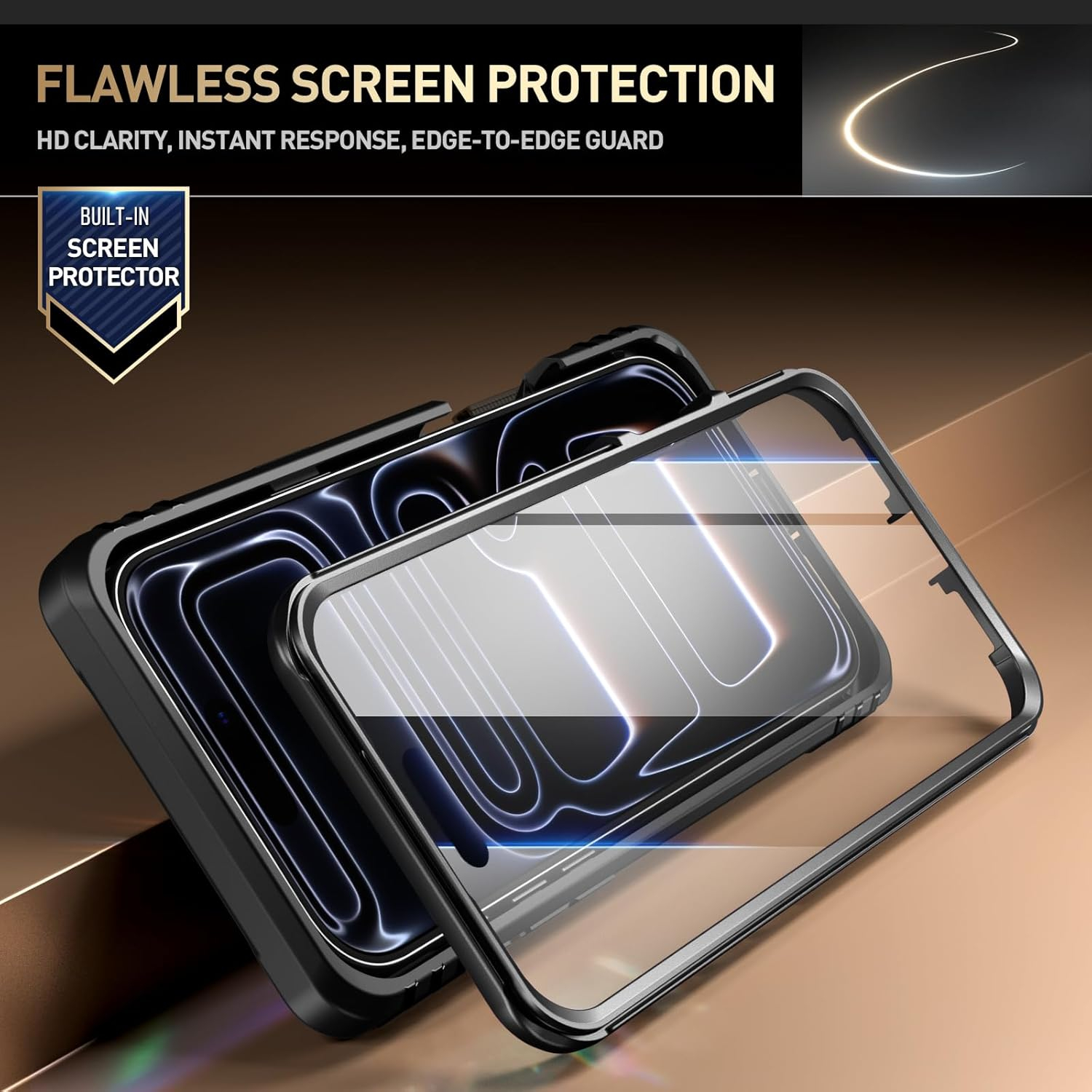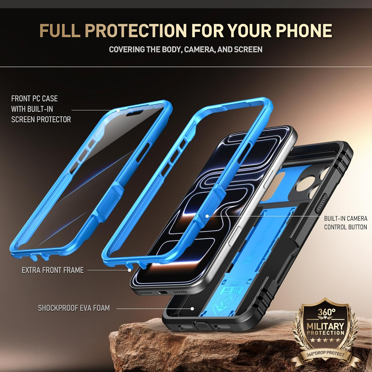 Dahili ekran koruyucusu, bağlantı kapakları, sağlam polikarbonat kasa ve darbe emici TPU, 360 derece koruma sunar.