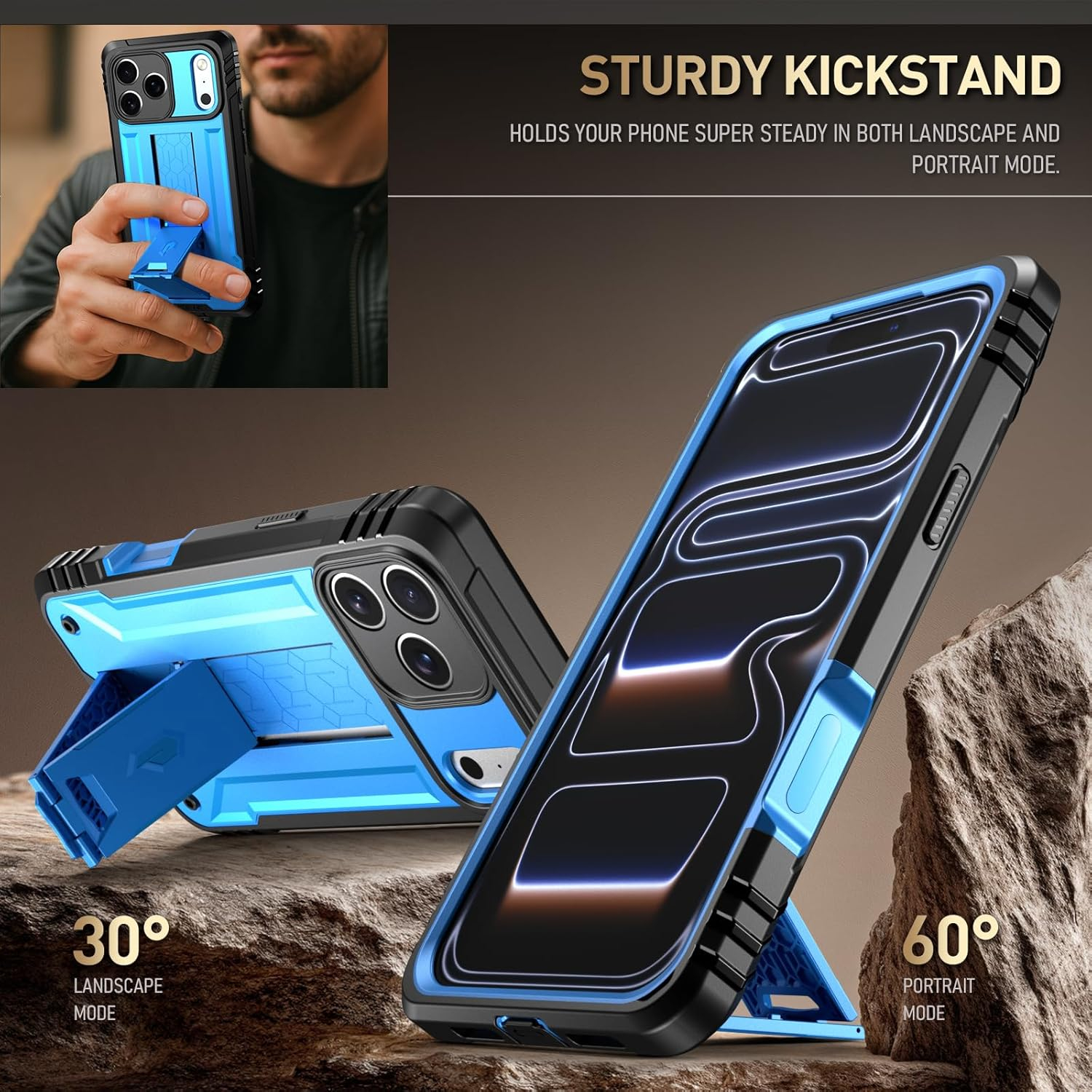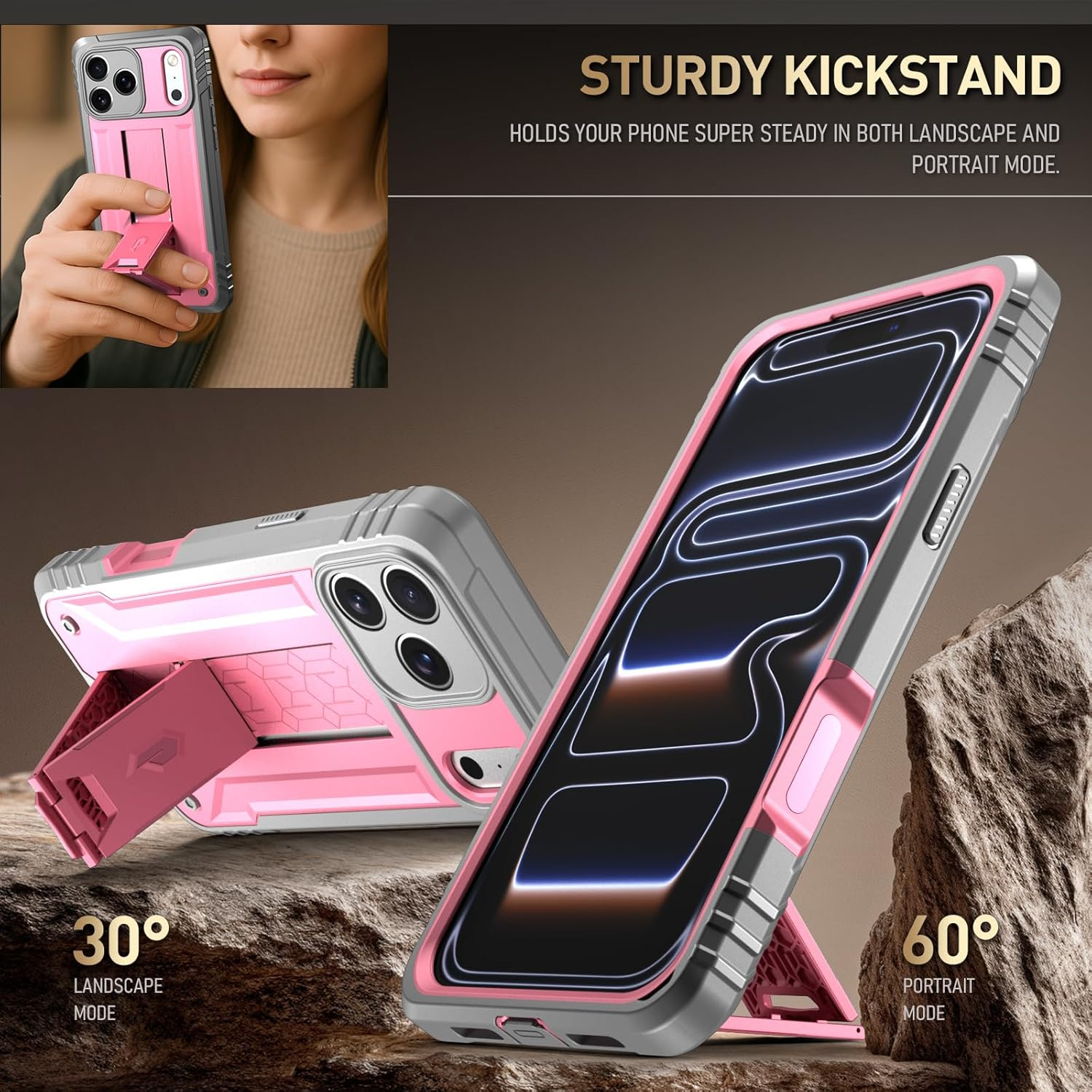 Kickstand özelliğiyle eller serbest kullanıma olanak tanır.
