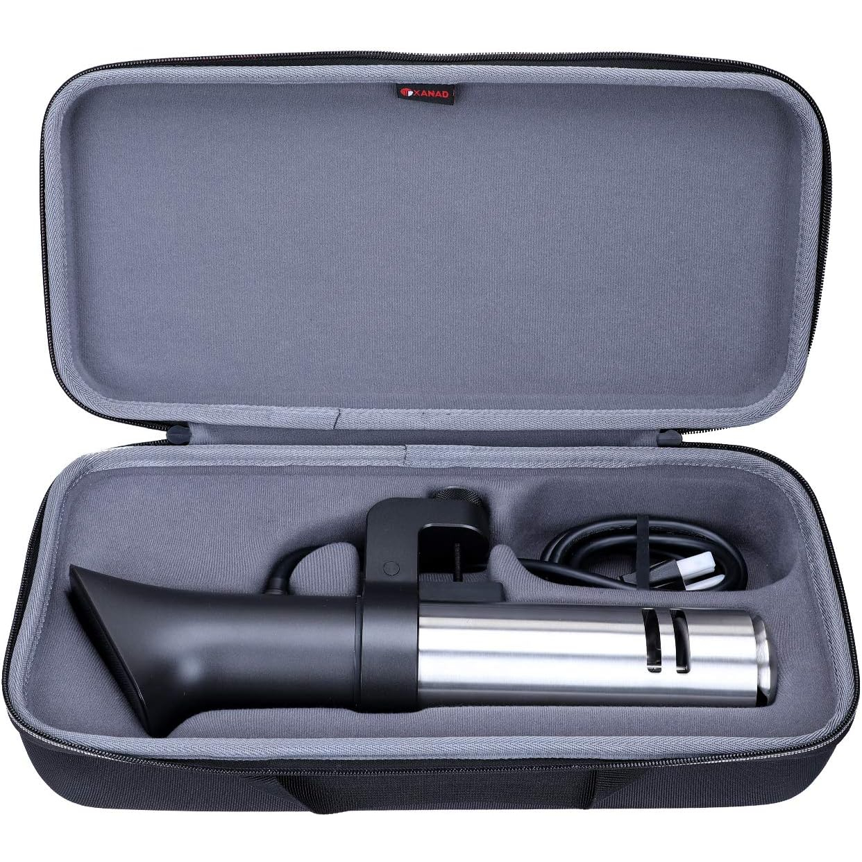 XANAD çantasının iç tasarımı, Anova Culinary,Sous Vide Precision Cooker Pro, 1200 Watt, tamamen metal, aksesuarlar için file cepli cihazınızı saklamak için yeterli alana sahiptir.