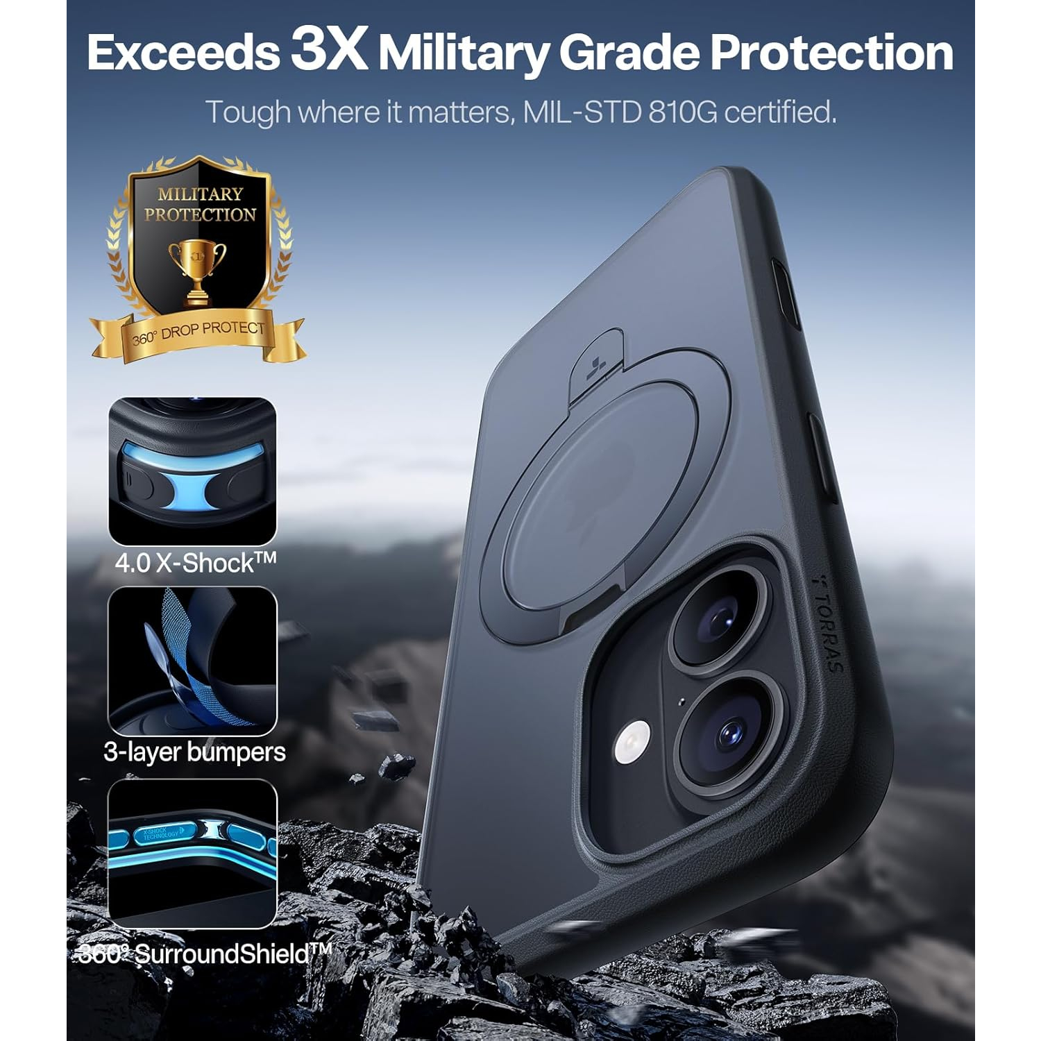Dahili 360° darbe emici hava yastıkları ve X-Shock 3.0 dört köşe hava yastıkları ile 3 kata kadar askeri düzeyde koruma sağlayarak her zamankinden daha fazla güven verir.