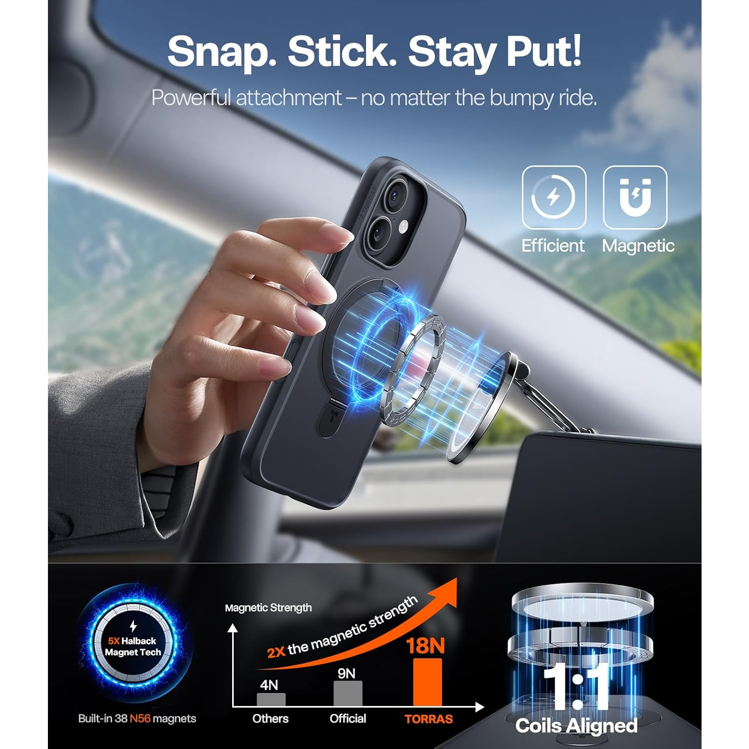 Manyetik dış hat, şarj cihazınız ve araç tutucunuz için güvenli bir tutuş sağlar.