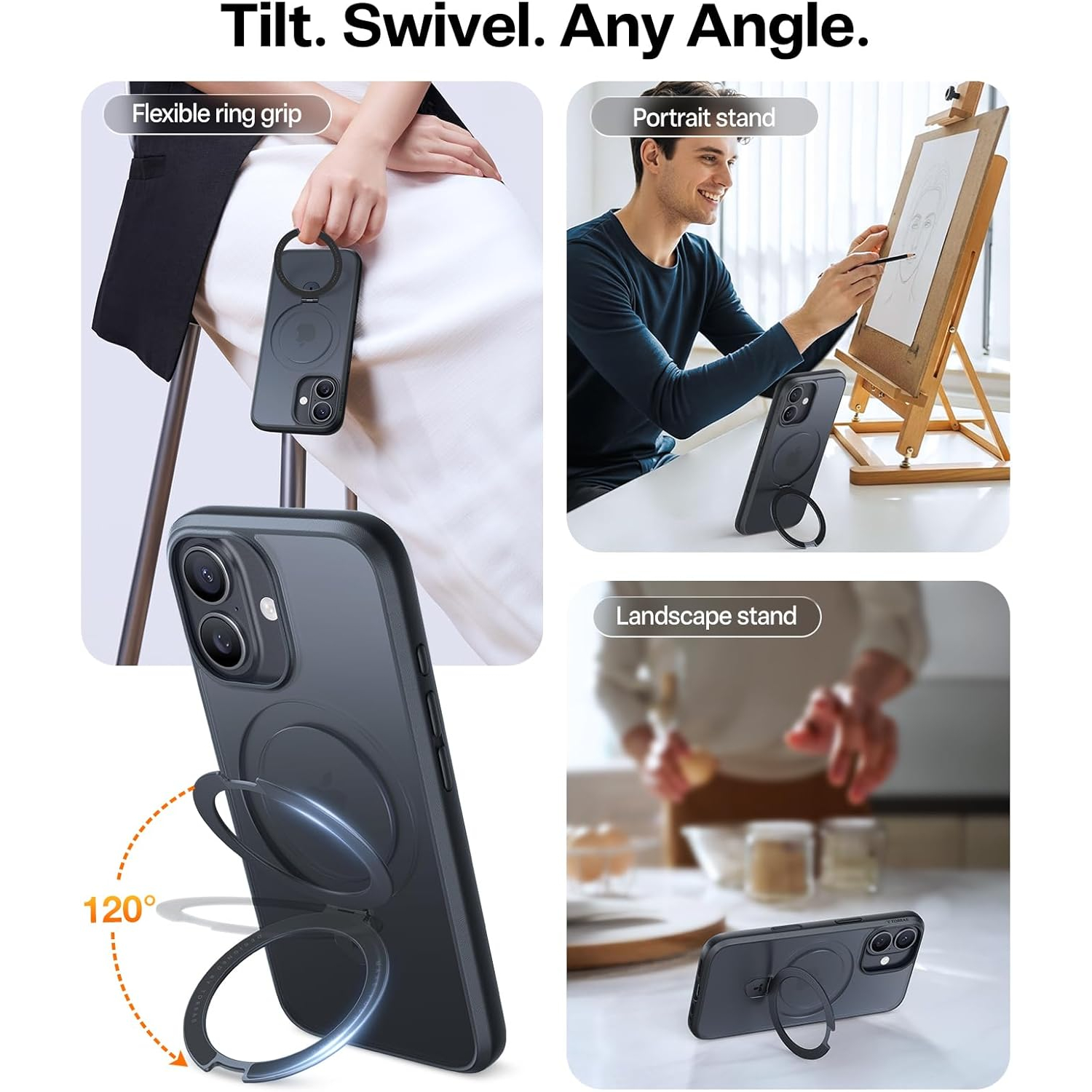 Telefonunuzu istediğiniz gibi kolayca kavrayın, destekleyin, monte edin ve şarj edin.