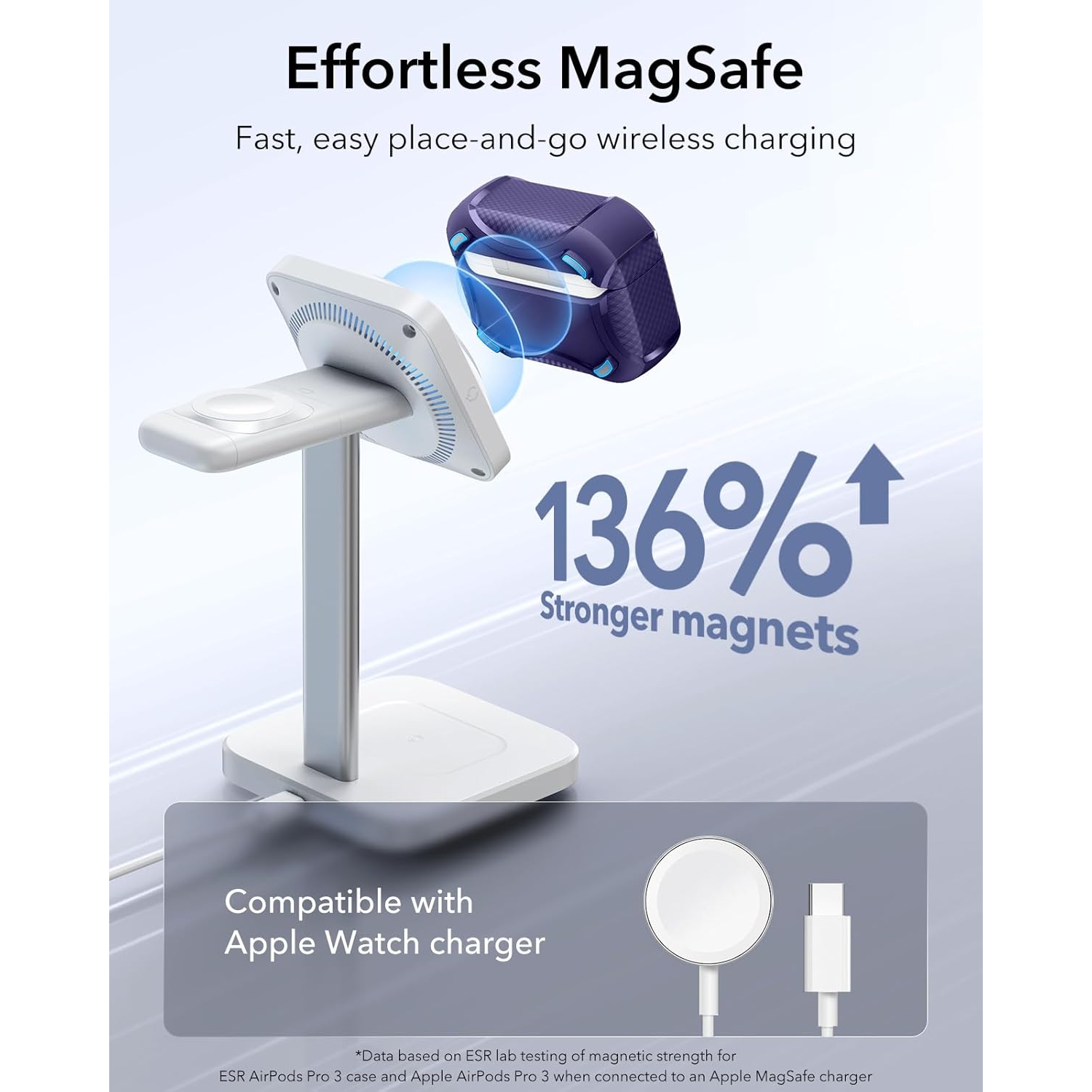 Kutunun arkasına yerleştirilmiş güçlü mıknatıslar, MagSafe şarj cihazlarında güvenli bir kilit sağlayarak kulaklıklarınız için dokun ve git kablosuz şarj özelliğinin keyfini çıkarmanızı sağlar.