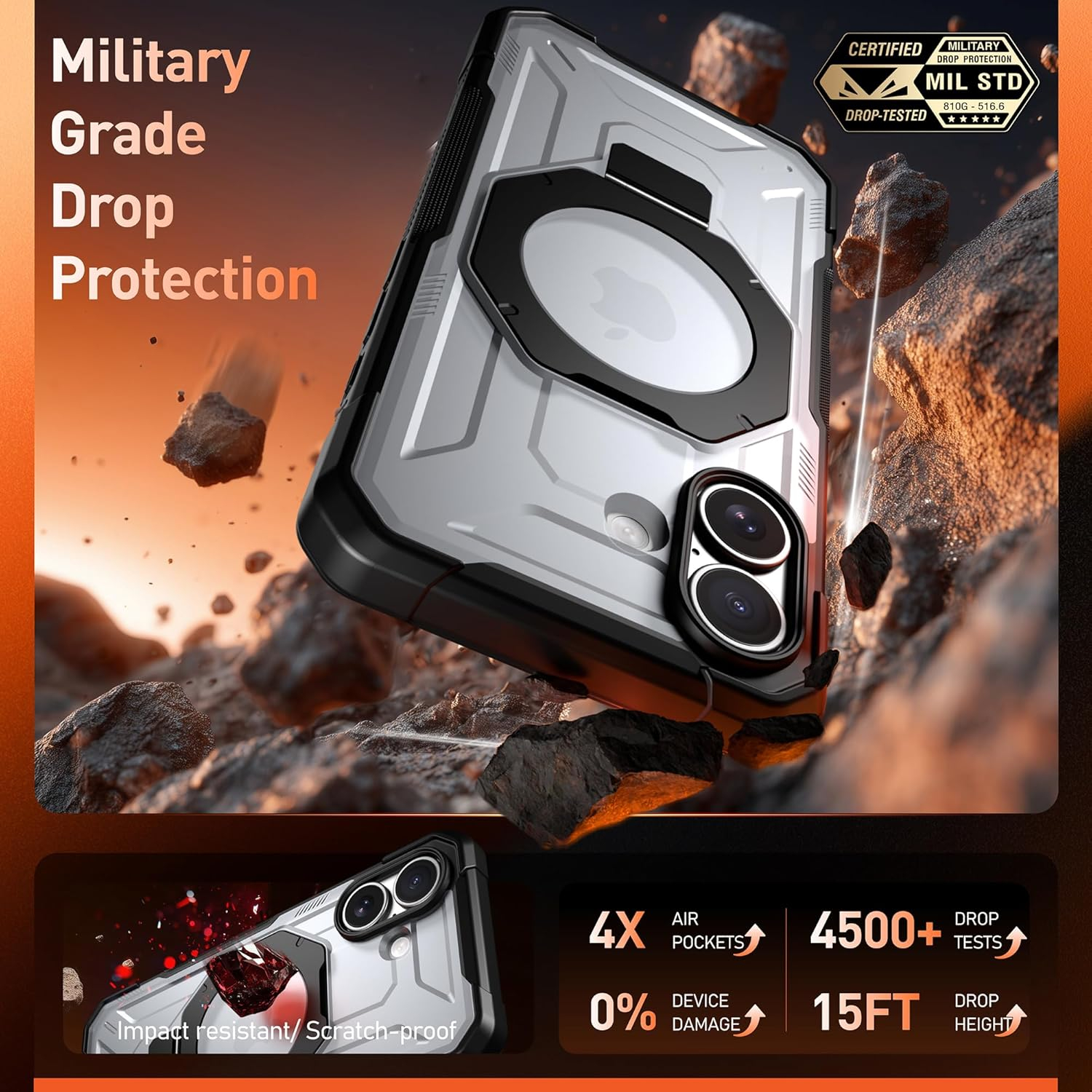 4,5 Metre Askeri Sınıf Düşme Testi Kılıf, iPhone telefonunuzu her açıdan korur.
