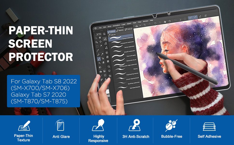 Paperfeel ekran koruyucunun buzlu yüzeyi kullanıcıların s-pen'i daha kolay kontrol etmesine yardımcı olurken, buzlu yüzey sanki kağıda yazıyormuş gibi hissetmenizi sağlayabilir.