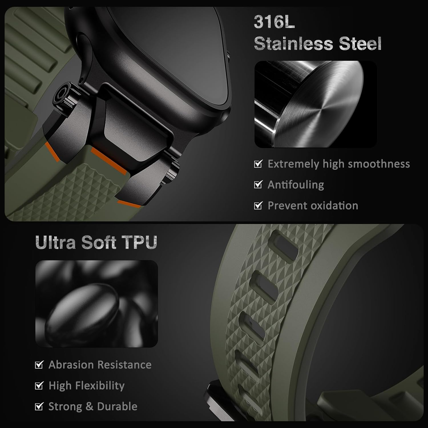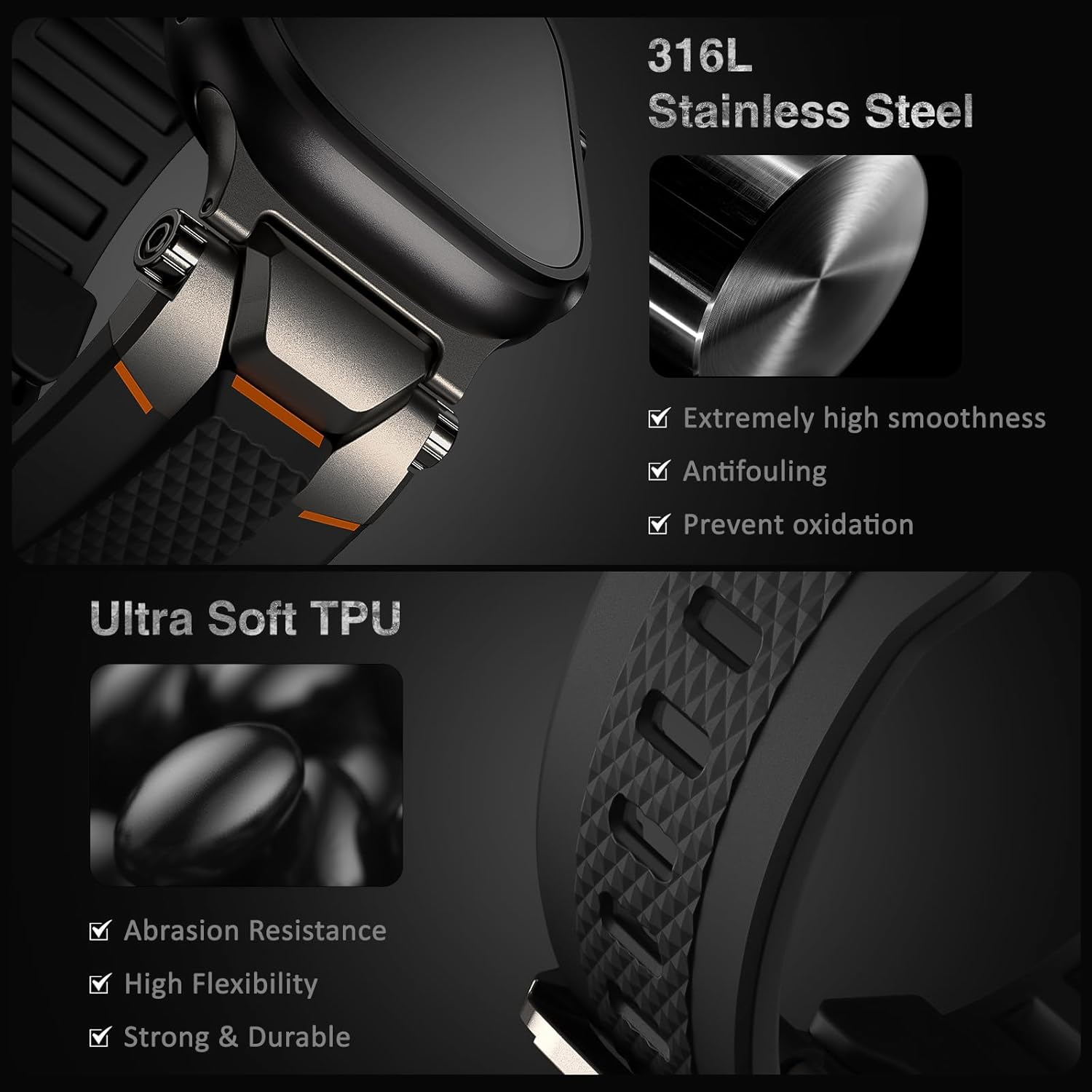 316L Paslanmaz Çelik + PC, dahili vidalar, Apple Watch Ultra 3/2/1 kordon için kayışla bağlantıyı güçlendirmiştir.