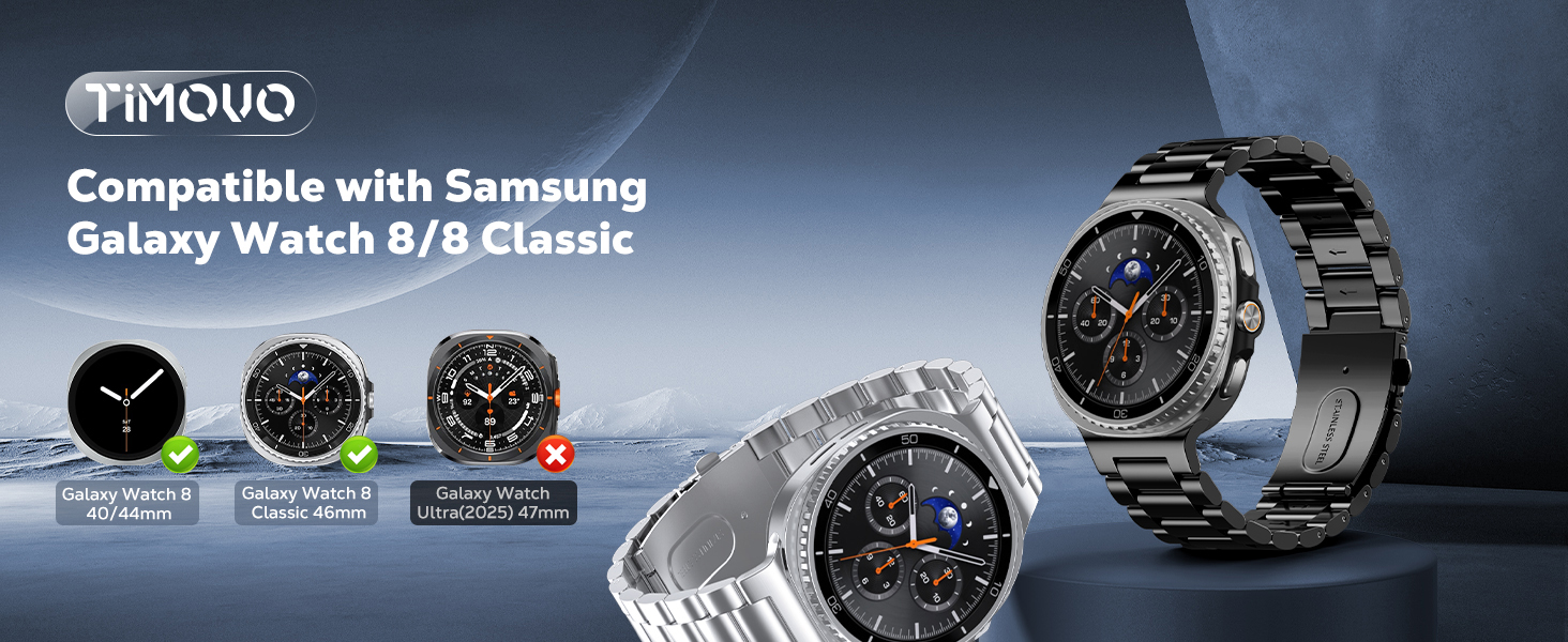 TiMOVO Galaxy Watch 8 Classic 46mm Kayış ürünü Galaxy Watch 8 Classic ile tam uyumludur.