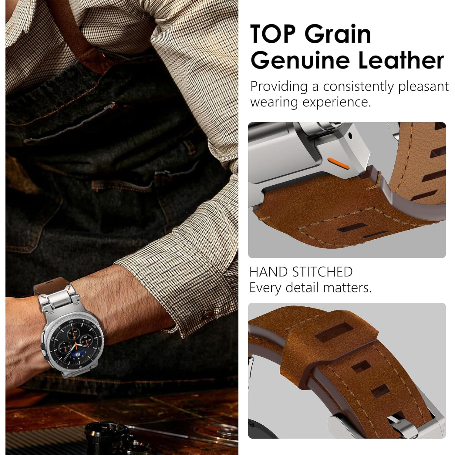 Wingle Galaxy Watch 8 bant/ 8 Klasik erkek bandı, yumuşak, nefes alabilen ve dayanıklı hakiki deriden üretilmiştir.