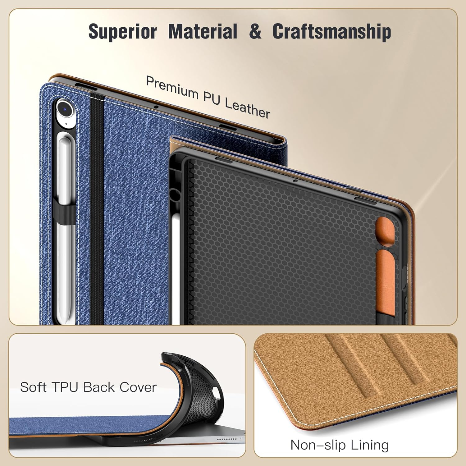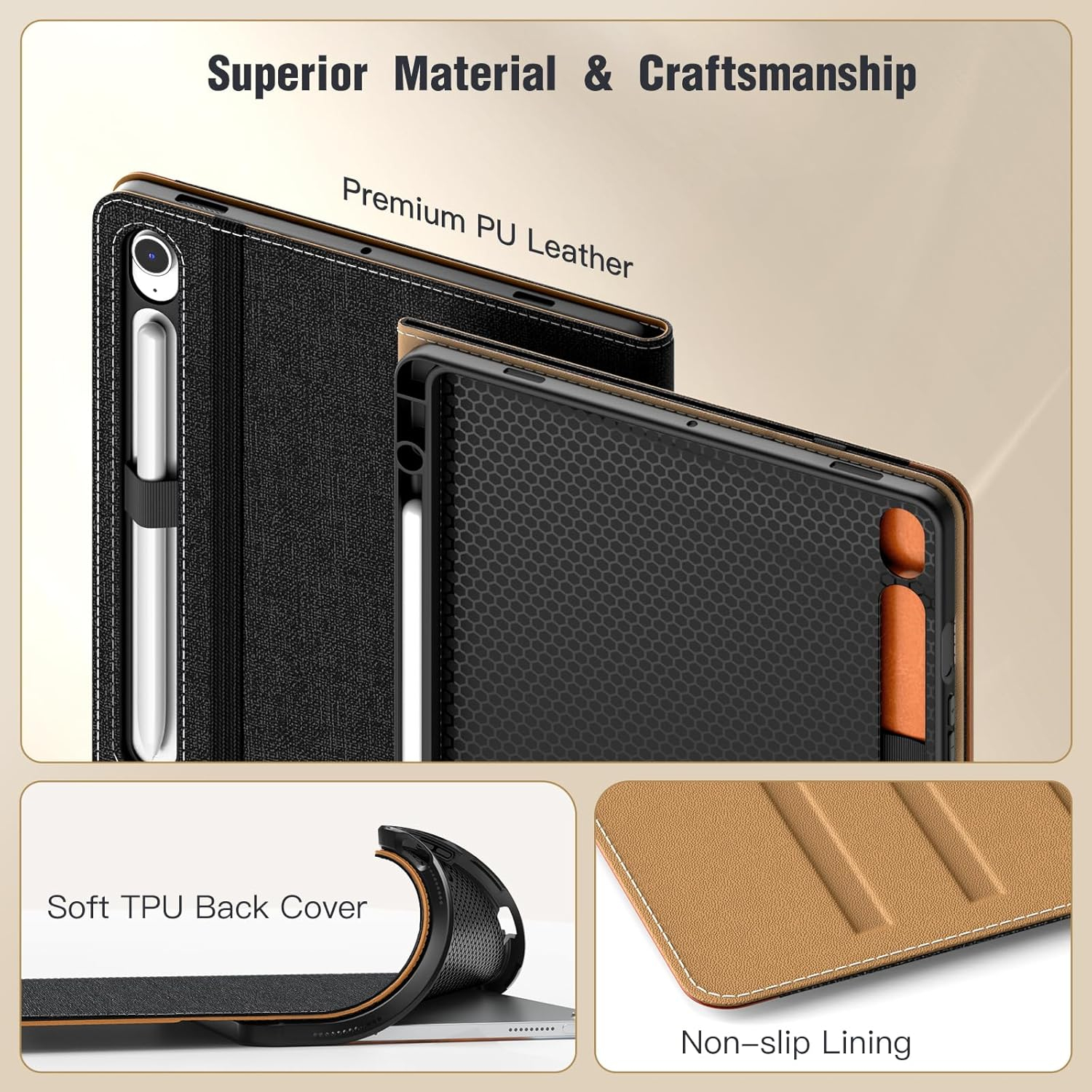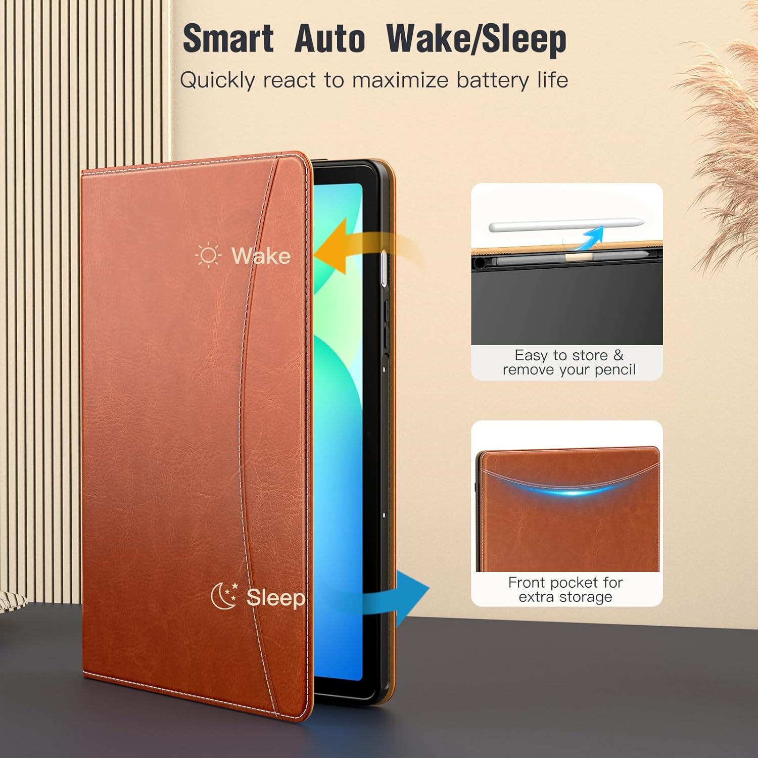 Galaxy Tab S10 Lite kılıfı, tabletinizi çizilmelere karşı koruyan ve kazara düşmelerden kaynaklanan hasarı azaltan hassas dikişli birinci sınıf PU deri dış yüzey, kaymaz astar ve yumuşak TPU arka yüzeyden üretilmiştir.
