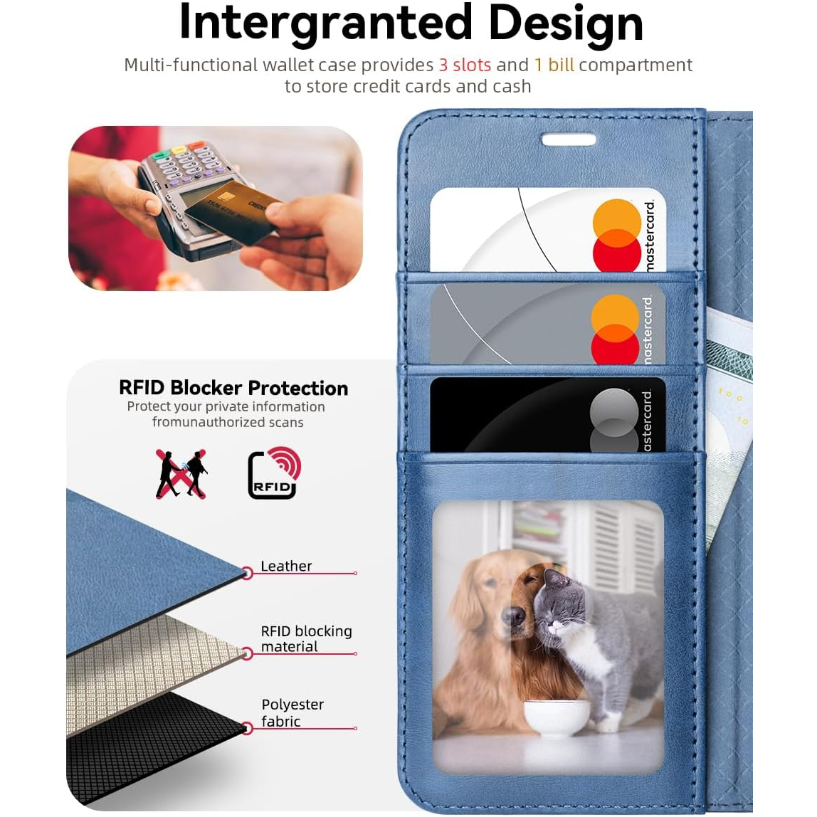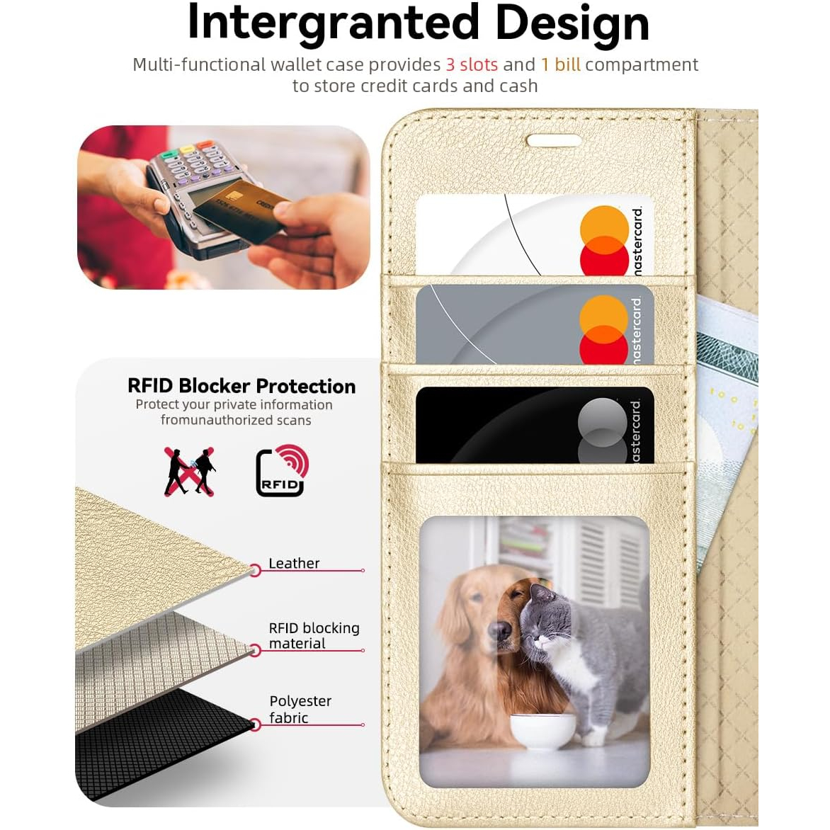 Galaxy kılıfını eller serbest görüntüleme için sağlam bir destek standı haline getirmek üzere katlayabilirsiniz; kart bilgilerinizi RFID tarayıcılar tarafından veri hırsızlığından korumak için RFID koruma teknolojisi ile donatılmıştır.