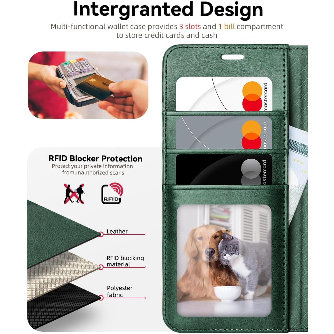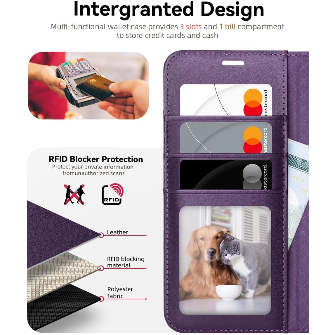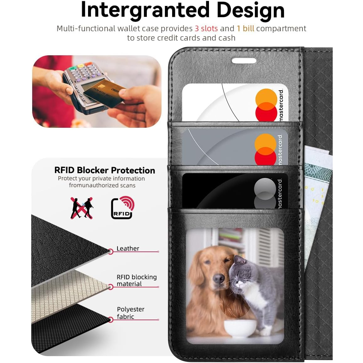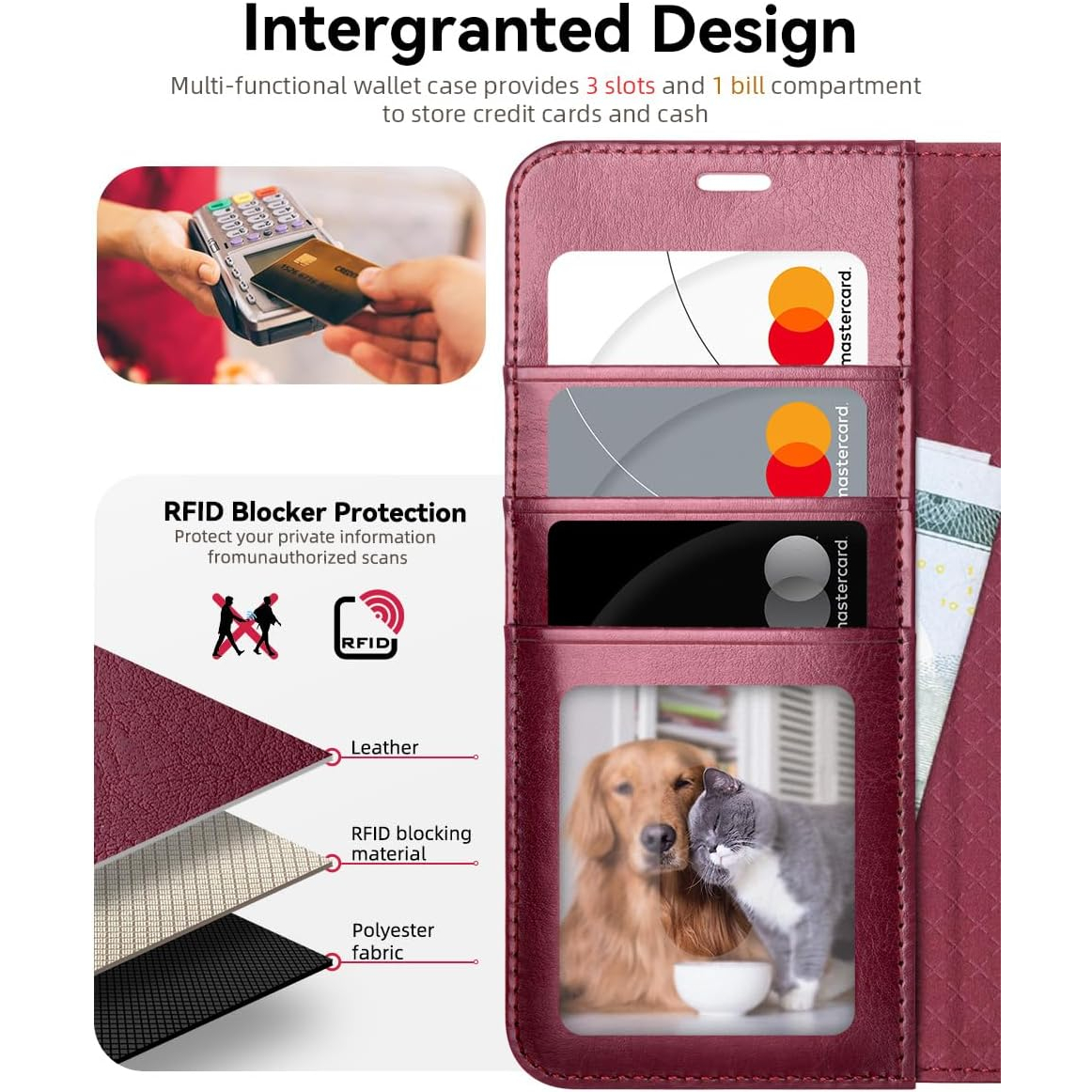 3 kart yuvası ve manyetik kilitli bir cüzdan bölmesi içerir, mükemmel bir şekilde kapanırken 3 kartı ve birkaç banknotu sabitler.