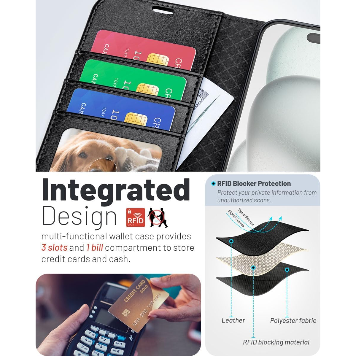 3 kart yuvası ve manyetik kilitli bir cüzdan bölmesi içerir, mükemmel bir şekilde kapanırken 3 kartı ve birkaç banknotu sabitler.