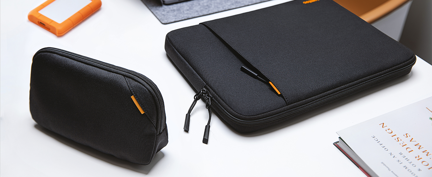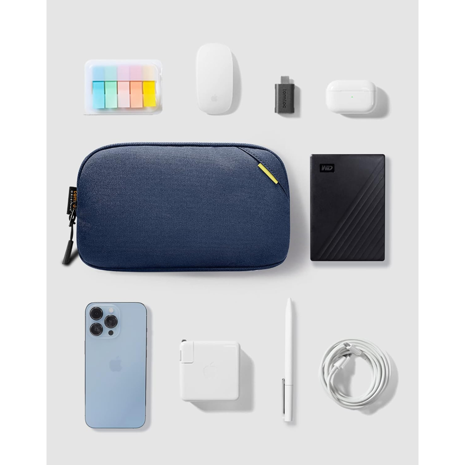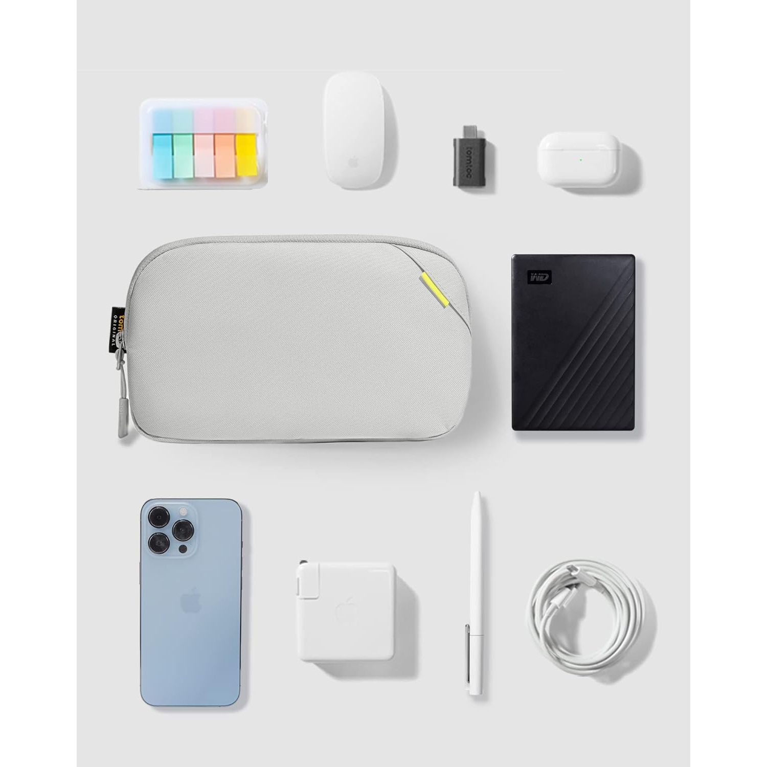 Şarj cihazı, fare, kablolar, adaptörler, SSD, HDD muhafazası, güç bankası, hub, USB-C adaptörü, SD kart, kişisel eşyalar ve daha fazlası için 2 düzenli küçük cepli mükemmel depolama.