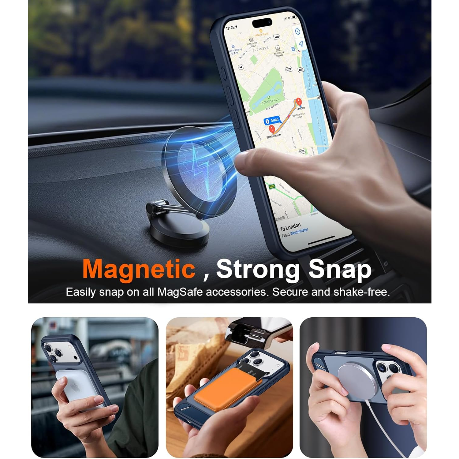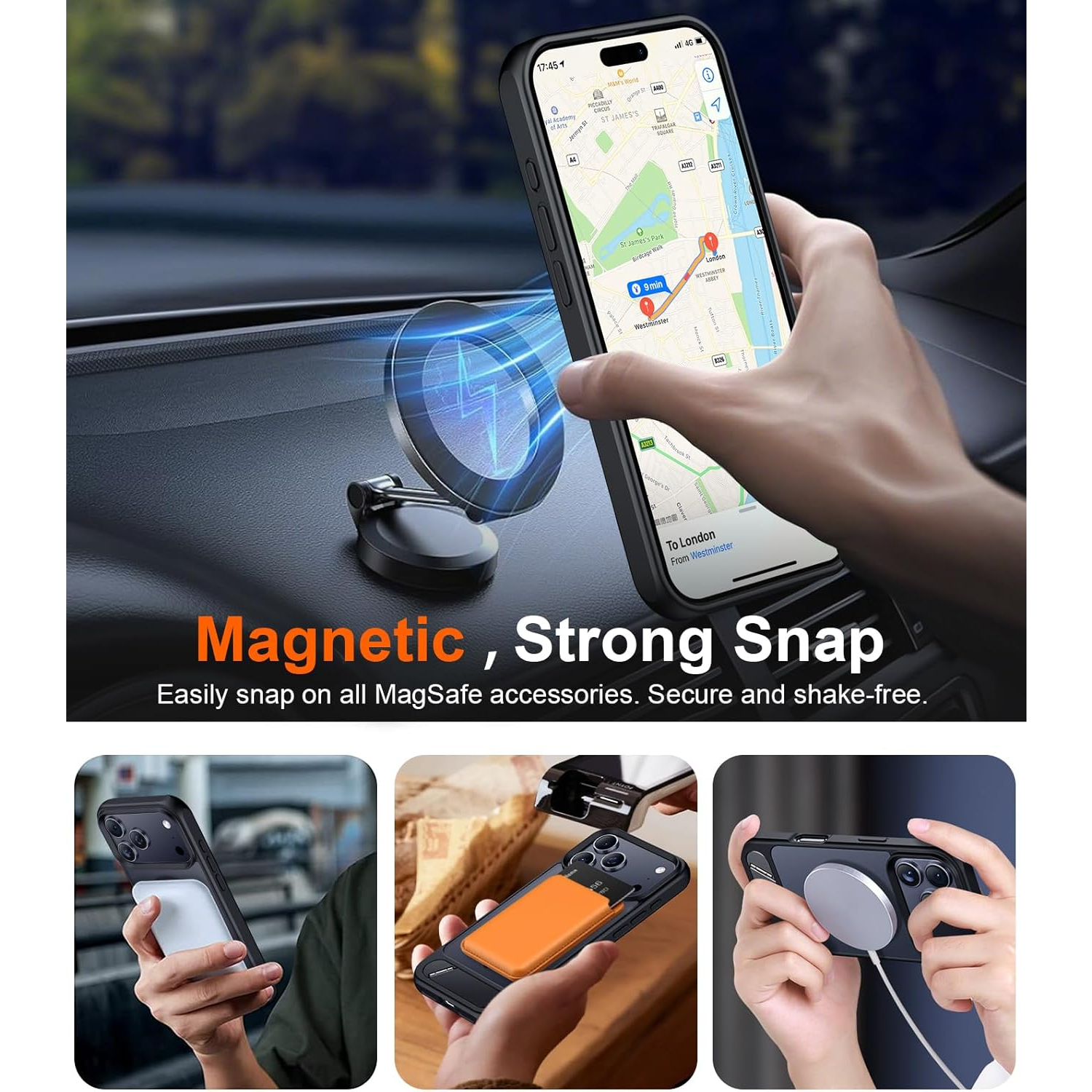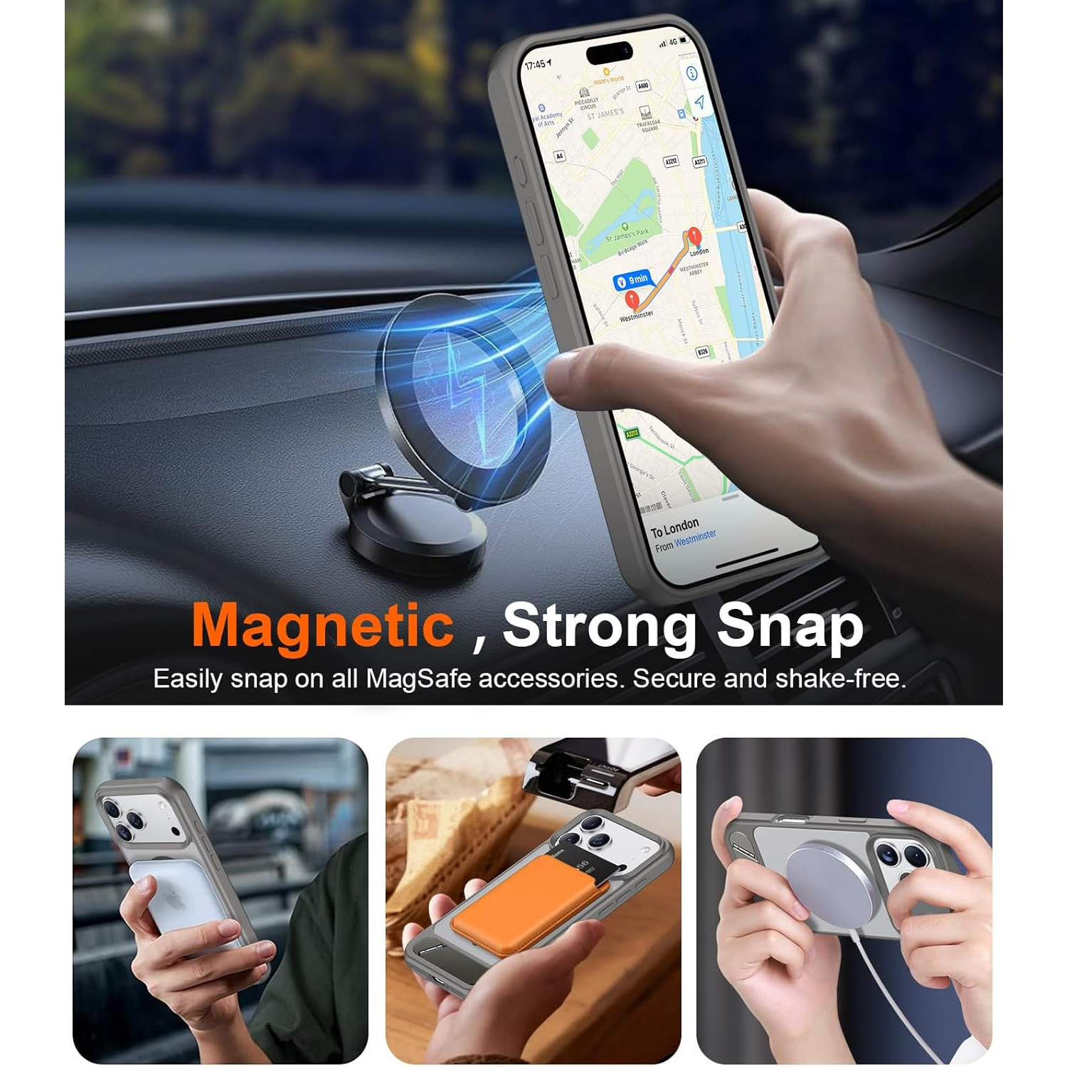 Dahili süper güçlü manyetik halka, manyetik şarj cihazı, cüzdan, pil takımı, araç tutucu vb. gibi MagSafe aksesuarlarıyla uyumlu şekilde sıkıca bağlanabilir.