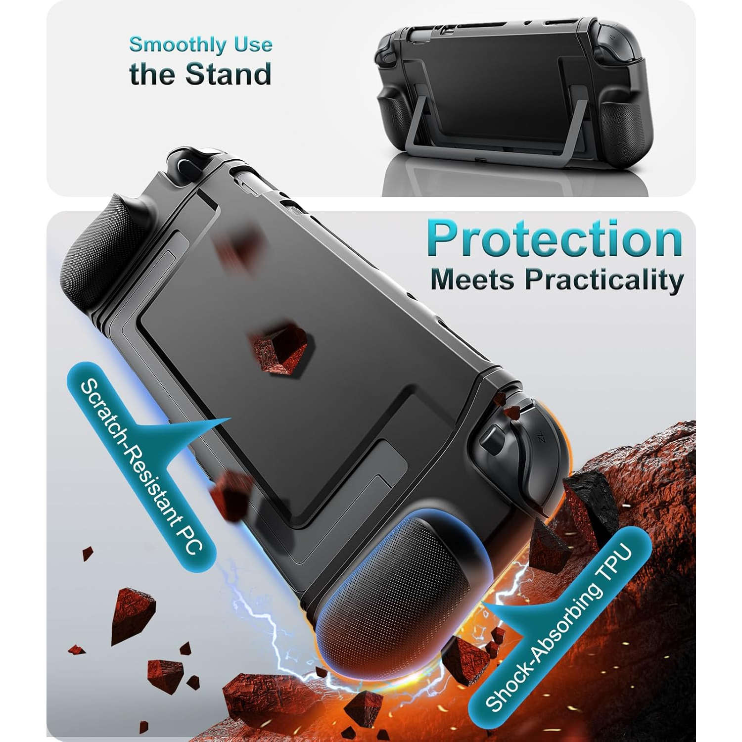 Switch 2 grip kılıfı, darbeye dayanıklı esnek TPU ve çizilmeye dayanıklı sert PC malzemeden üretilmiştir, Switch 2'nizi günlük darbelere, düşmelere, çizilmelere, toza ve parmak izlerine karşı mükemmel şekilde korur.