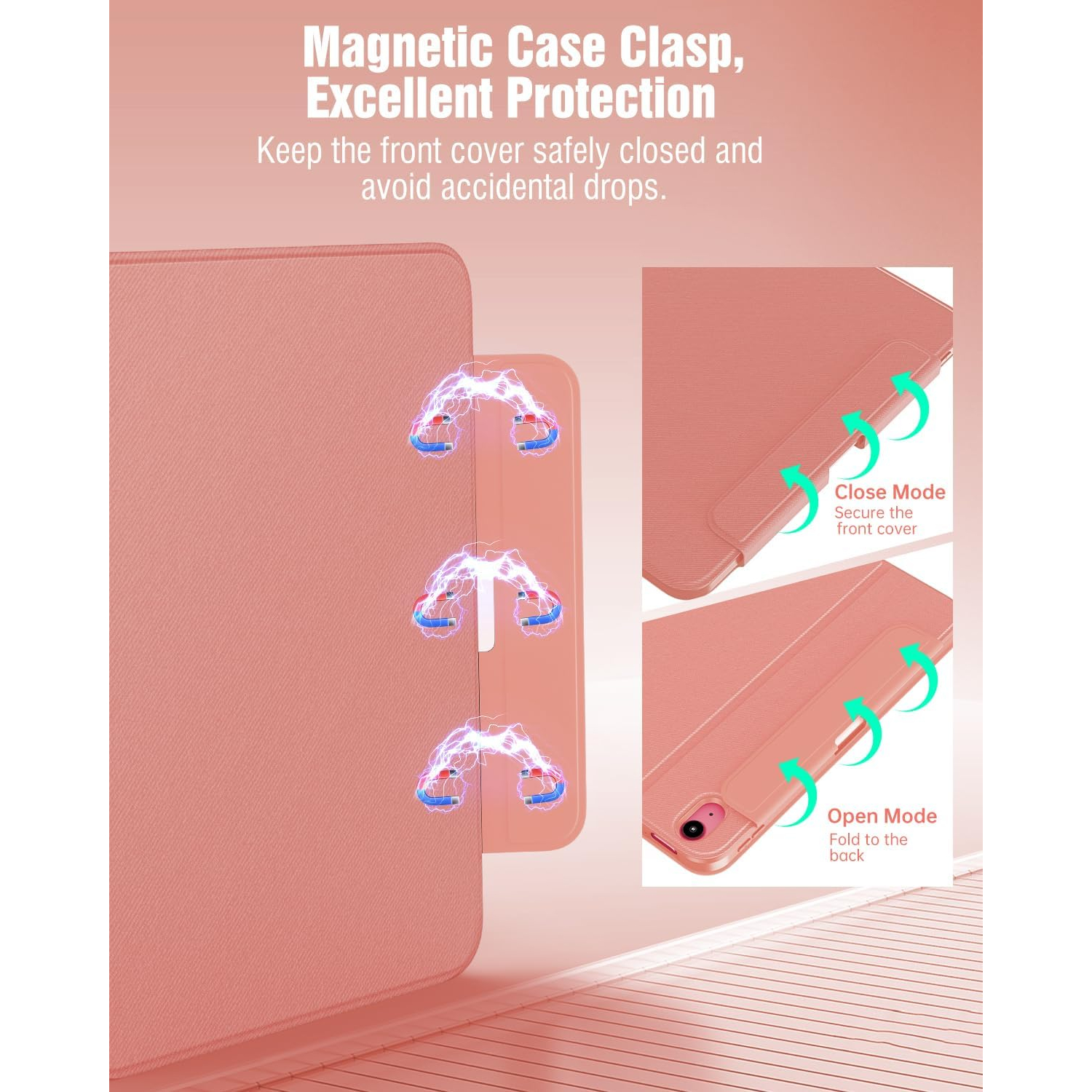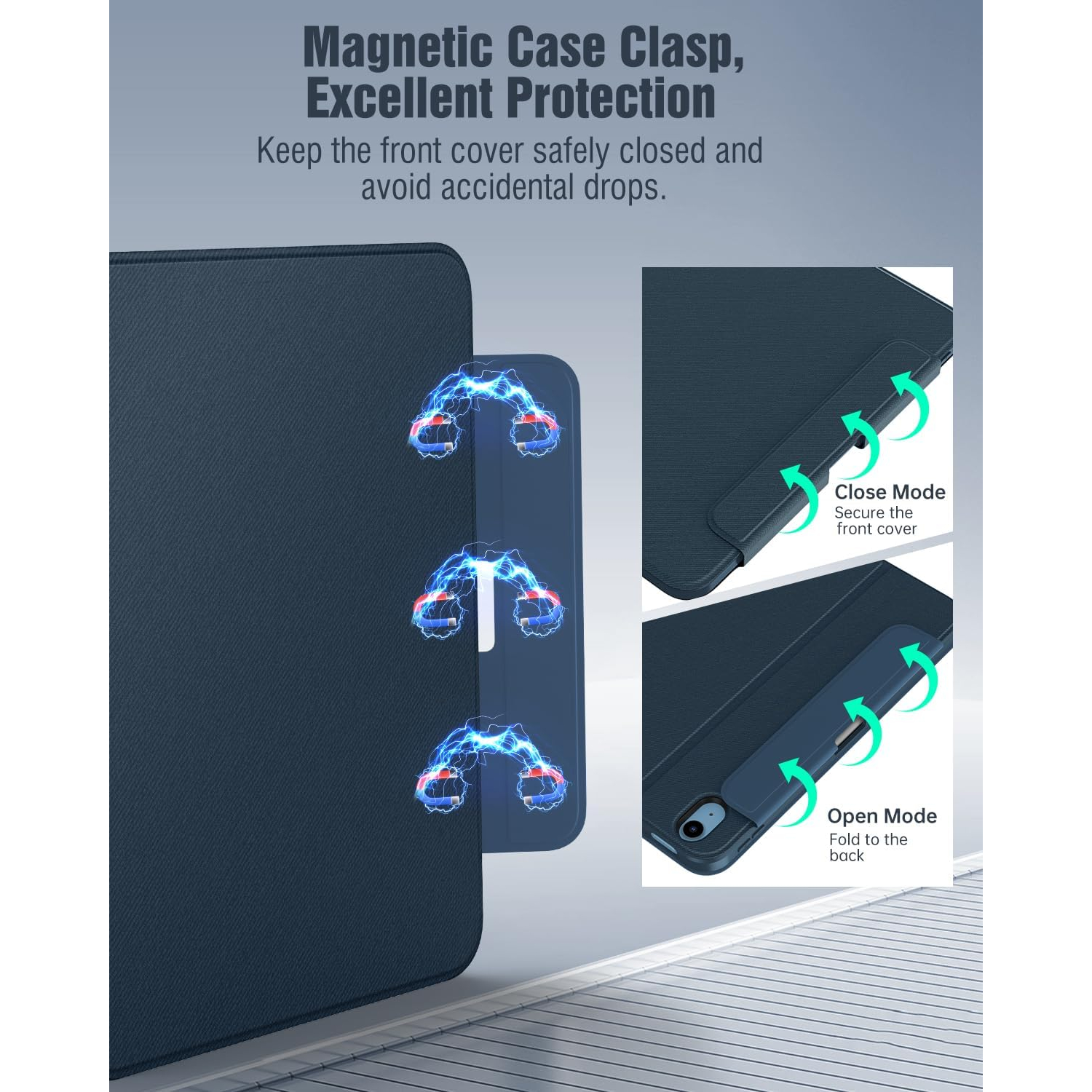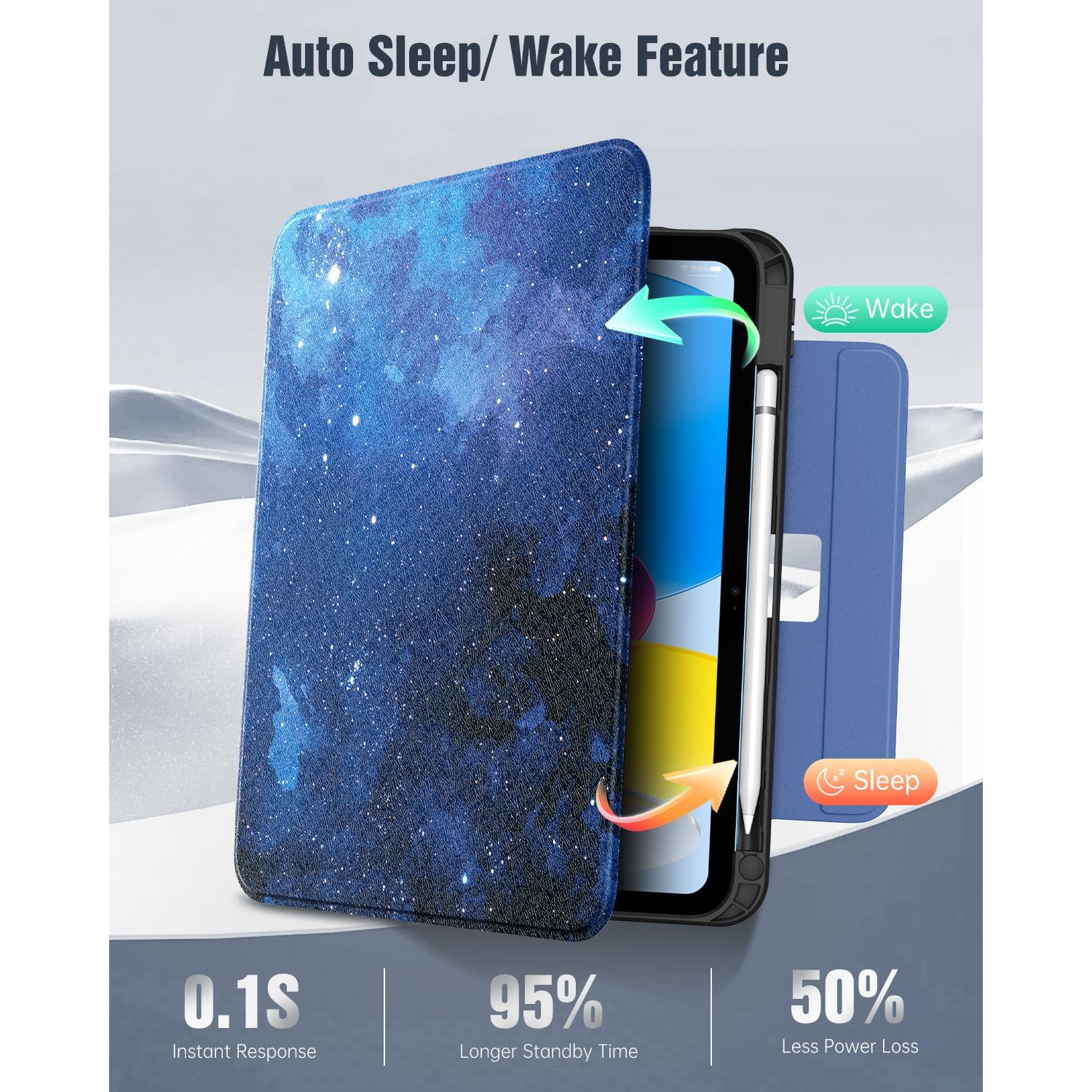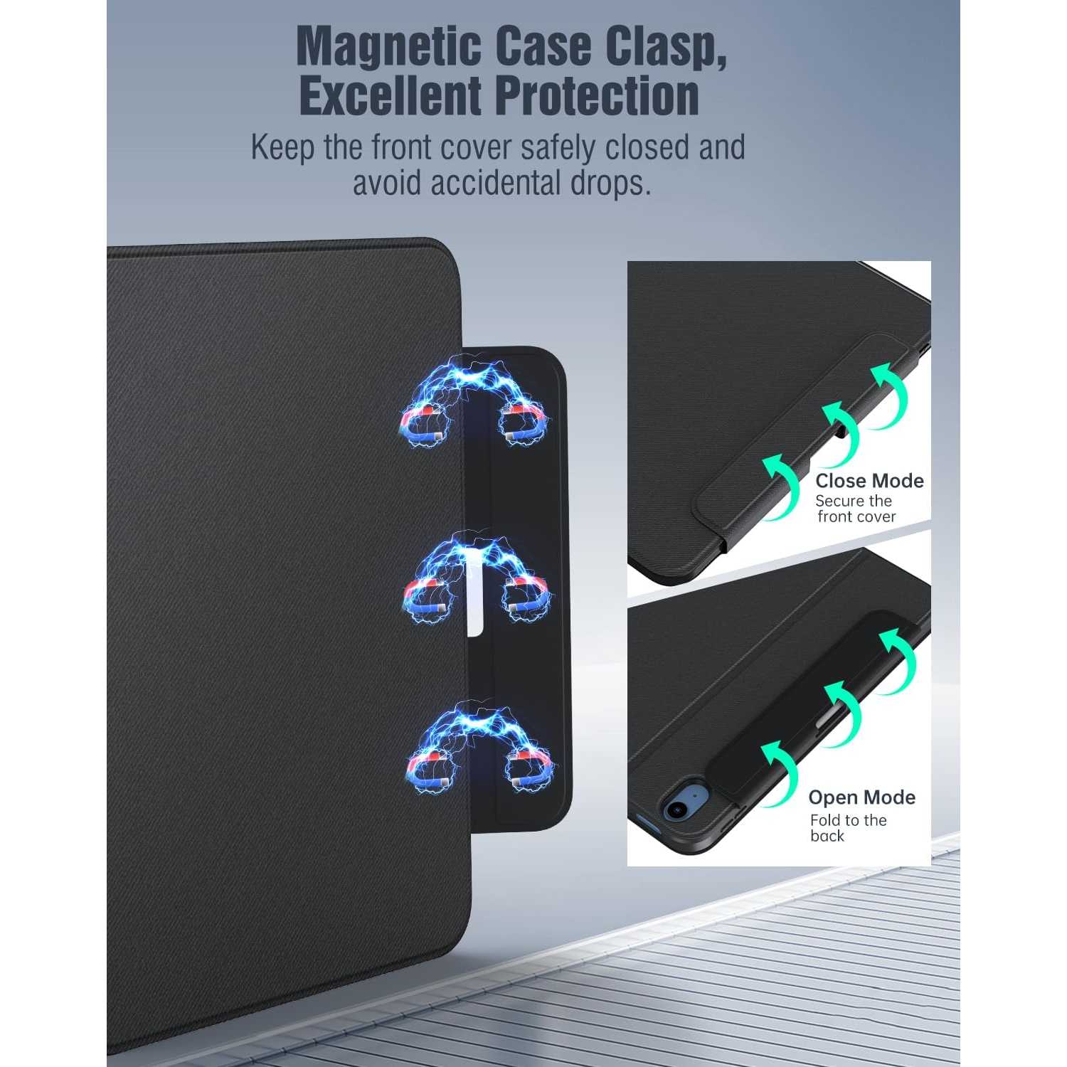 Manyetik akıllı kılıf, otomatik uyandırma/uyku modunu destekleyerek pil tüketimini azaltmaya ve bekleme süresini uzatmaya yardımcı olur. Güçlü manyetik toka, kapalıyken A16 iPad kılıfınızı korur.