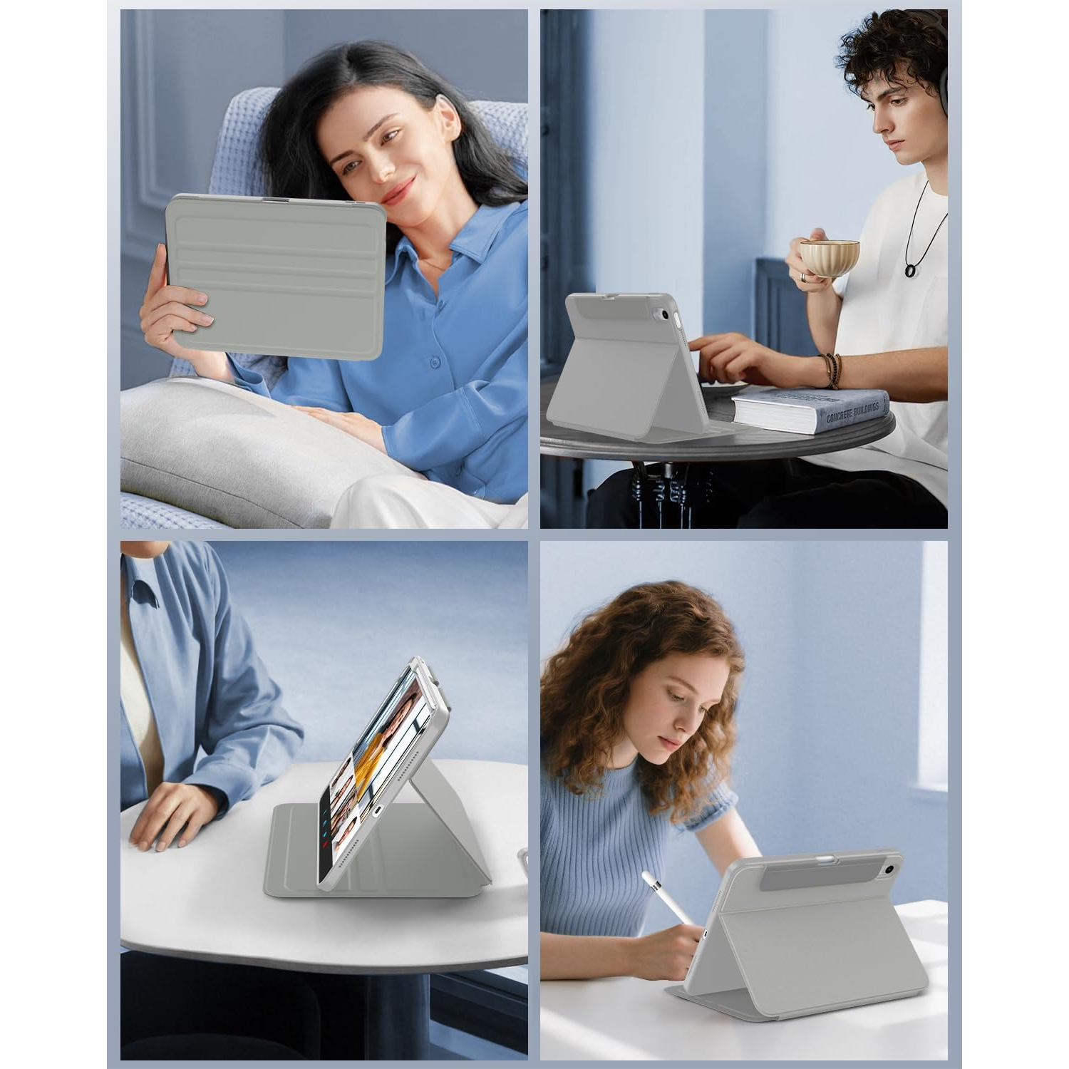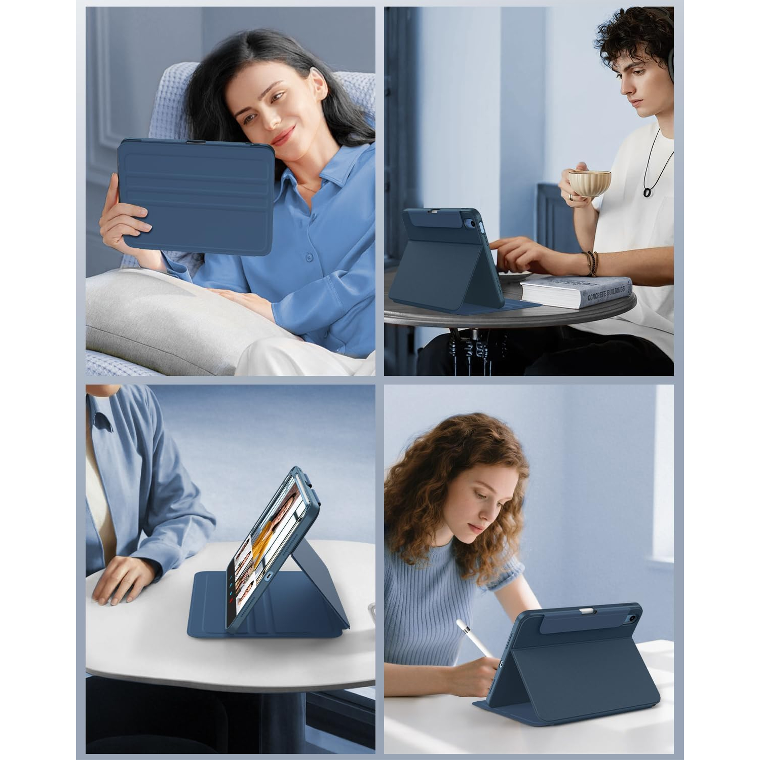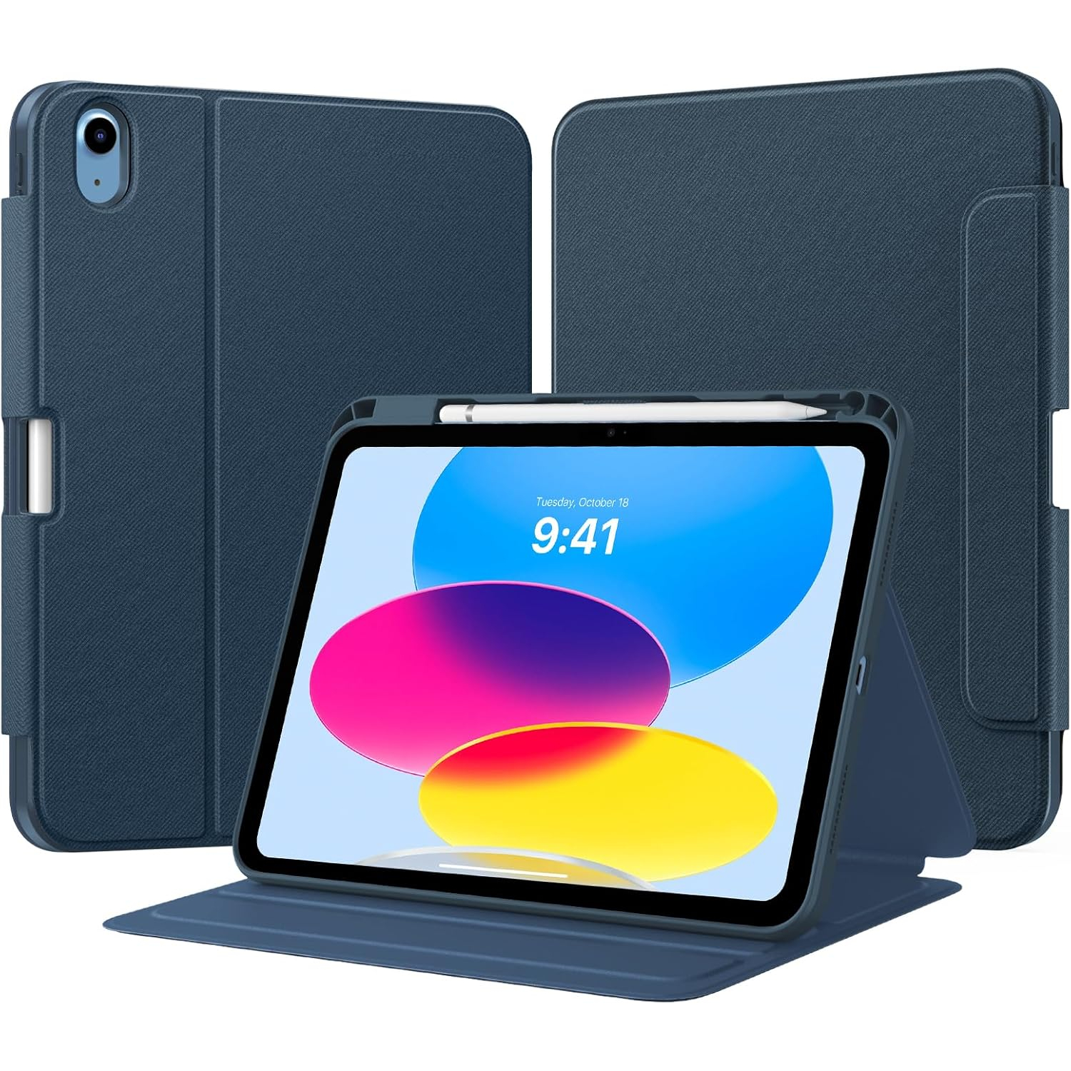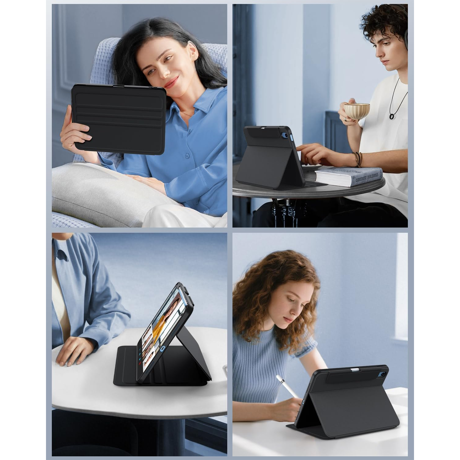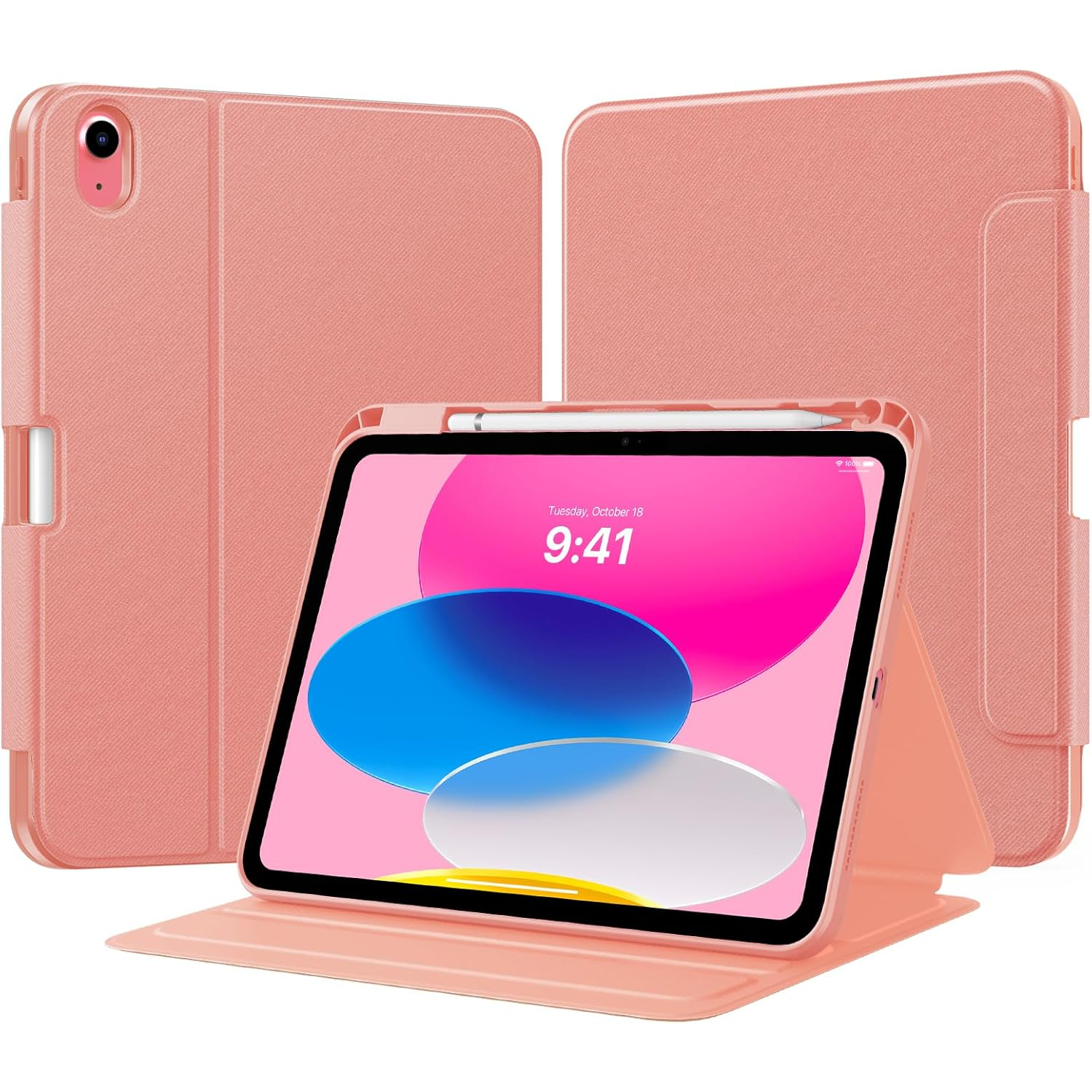 Bu 10. nesil iPad kılıfı, üç açılı ayarlama için yerleşik oluklara sahiptir.